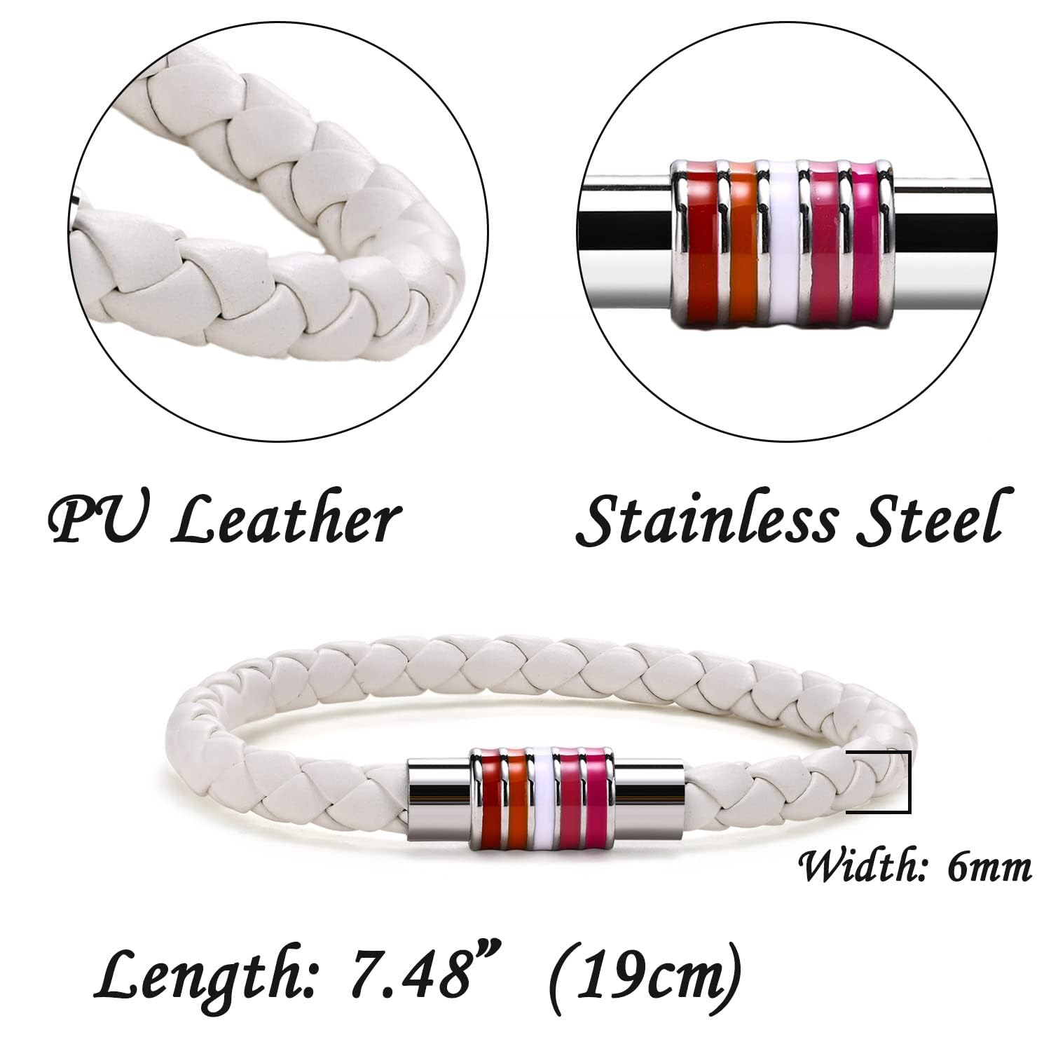 Material: LGBTQ pride bracelet is made of PU leather & stainless steel for LGBT of gay, lesbian, bisexual, transgender, asexual, pansexual, soft and durable, stylish and comfortable to wear.