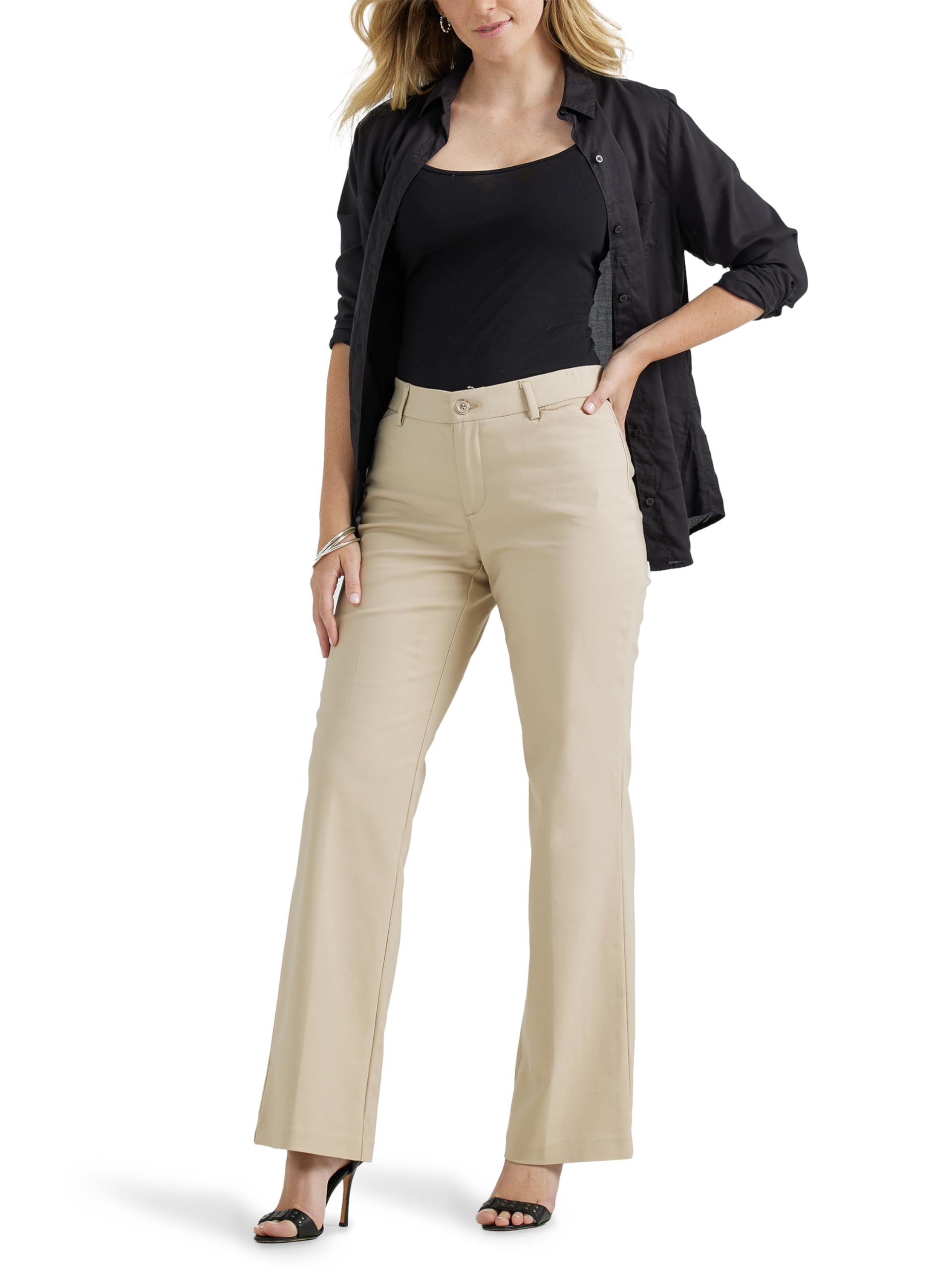 REGULAR FIT. With a regular fit and mid rise, these pants are a work-wear must. These women's trousers have a flexible non-binding waistband for all-day comfort.