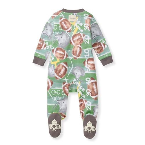 Description Wrap your little one in the soft embrace of Burt's Bees Baby Sleep and Play Pajamas. Our sleep & play pajamas are 100% organic cotton that is breathable and ideal for sensitive skin. Our Sleep n Play PJs are roomy for the little movers, and cozy enough for bedtime. Nighttime diaper changes are seamless with the diagonal zipper. The footed PJs are complete with a bee snap tab to keep little hands away from zipper pull. The non-slip ""bee grip"" on the footie provides extra stability for the little bees on the move. Whether it is thoughtful baby shower gift or stocking up on baby boy, baby girl or unisex baby essentials, these footed PJs are the perfect choice. Also, a great baby registry add-on! Every detail is designed with care, from the fabric's durability to the style, making these footie pajamas an essential in your baby boy or baby girl's wardrobe. Sizes Newborn to 3 months include convertible mittens to shield your baby from scratches. The pajamas are available in sizes Newborn, 0-3 Months, 3-6 Months, and 6-9 Months. These comfortable onesie baby pajamas come in a variety of fun watercolor prints.