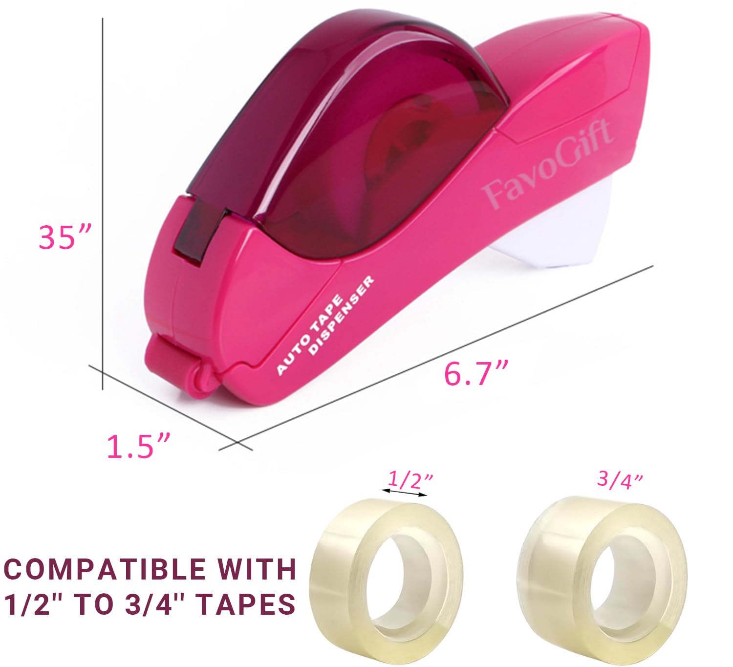 The ultimate tape dispenser designed to make your taping tasks effortless and efficient - the Portable One-Handed Tape Dispenser. This innovative device combines convenience, safety, and versatility to meet all your taping needs. With its one-handed operation feature, you can now tape with ease while having your other hand free to handle other tasks. Simply press down the lever, and the dispenser will automatically dispense 1" of tape, eliminating the hassle of manually tearing or cutting the tape. Whether you're sealing envelopes, packaging items, or wrapping presents, this dispenser ensures a smooth and seamless taping experience. Safety is paramount, especially when it comes to tools that may be used by children. That's why this dispenser is equipped with a concealed cutting blade. You can rest assured that it's safe enough for a child to use without the risk of accidental cuts or injuries. Designed to be portable and convenient, this tape dispenser is perfect for on-the-go use. It doesn't require any batteries, providing a reliable and hassle-free solution wherever you are. Whether you're at home, in the office, or in a classroom, this dispenser is ready to serve your taping needs without any power source dependencies. To get you started, the dispenser comes with one free roll of 1/2" tape and one free roll of 3/4" tape. You'll have the right tape widths at your fingertips for different applications. No need to search for tapes separately - you can start taping right away. Experience the ultimate tape dispensing solution with the Portable One-Handed Tape Dispenser. Say goodbye to tedious taping methods and embrace the convenience and efficiency of this must-have tool.