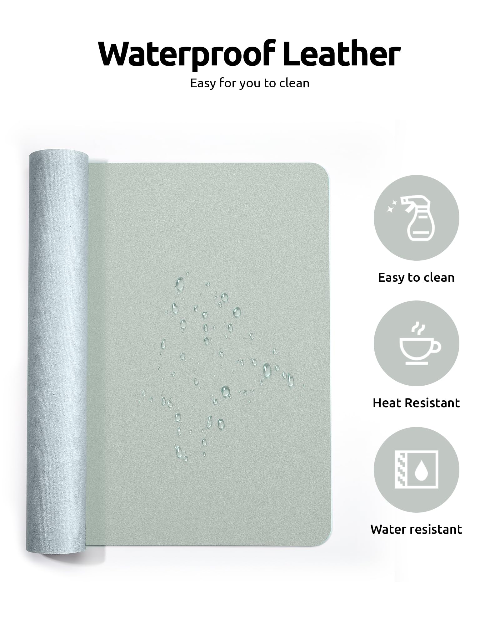 EASY TO CLEAN: Waterproof leather desk pad. Just use cloth for basic clean: liquid, dust, grease and dirt. Wet cloth would be prefer if there are too much dirt in the desk mat.