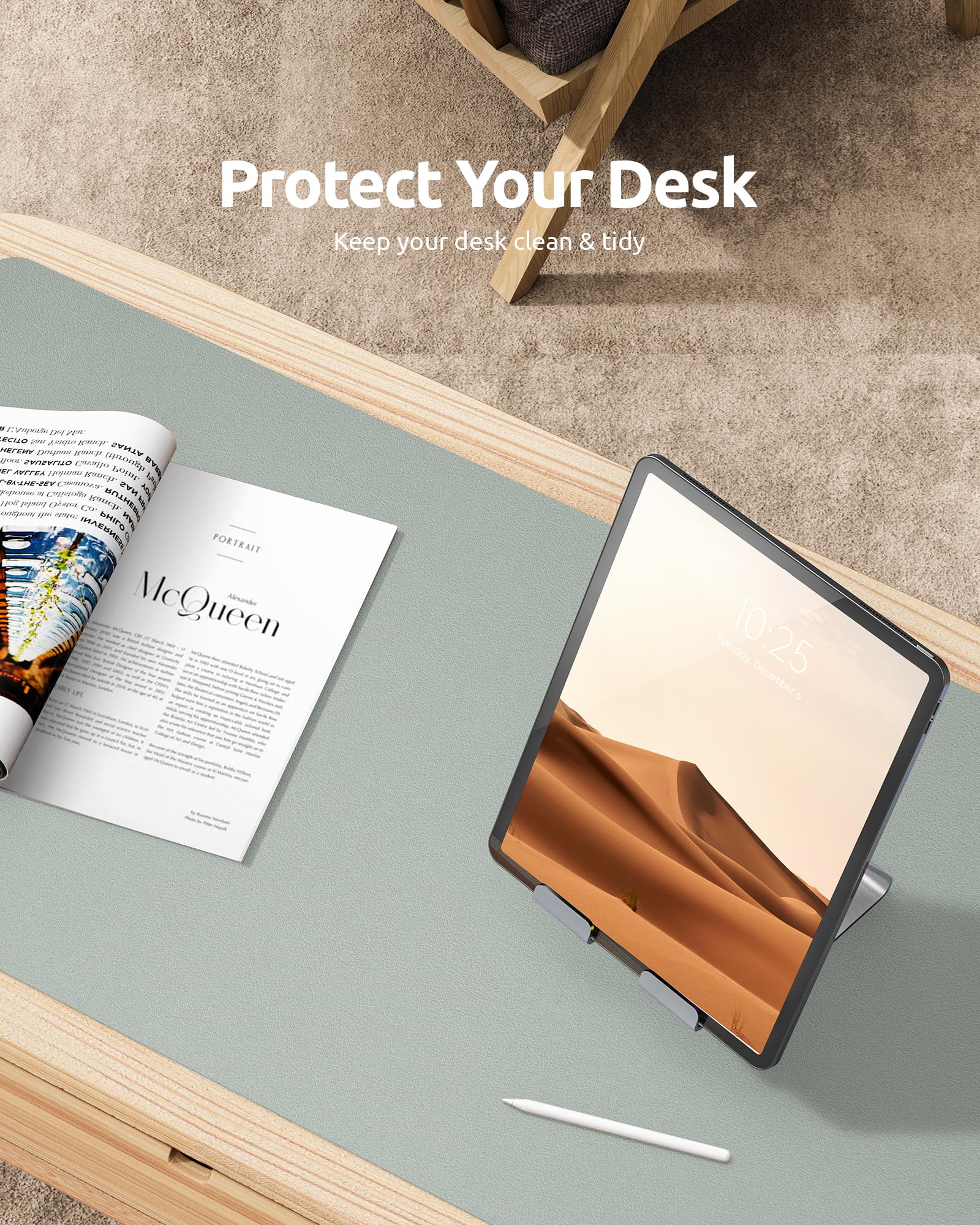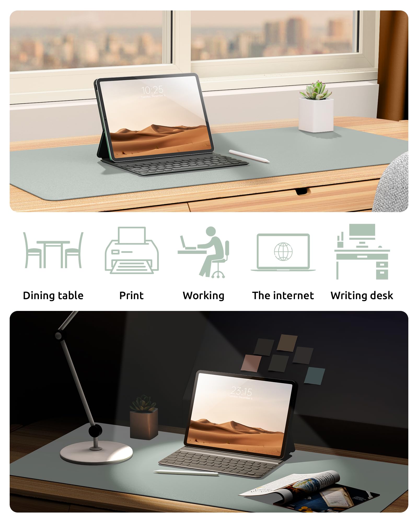 DESK PROTECTOR: Durable PU Leather material adapted, which can protect your desk from scratches, stains, spills, heat and scuffs. Multi-color provided, change your mode by change the working atmosphere. Surface can be used as a large mouse pad, comfortable resting surface for your hands while writing, typing, and using the mouse. A must have office or study supplies.