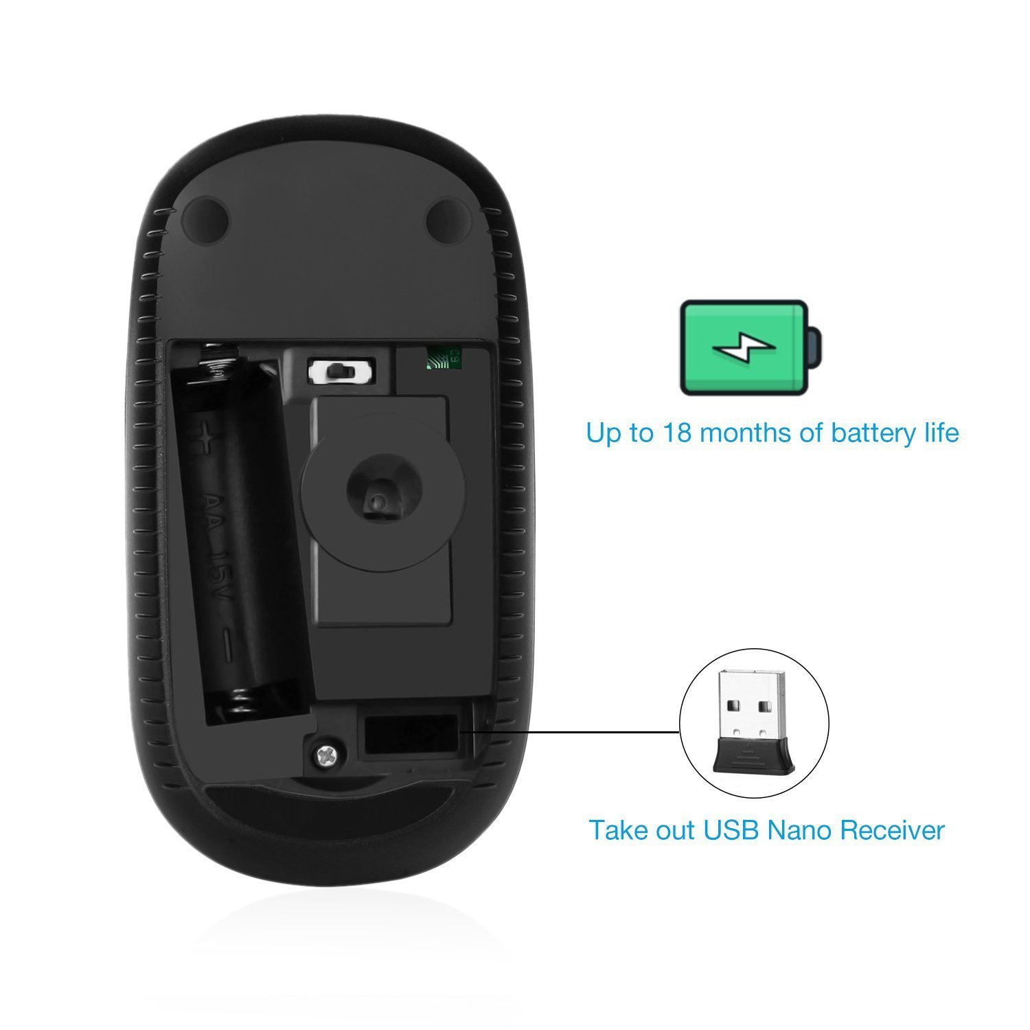 LOW POWER CONSUMPTION: Intelligent sleep mode can better extend battery life. It will enter auto sleep mode if you don't use it for 5 minutes to save battery and need to click it, the mouse will enter working mode again