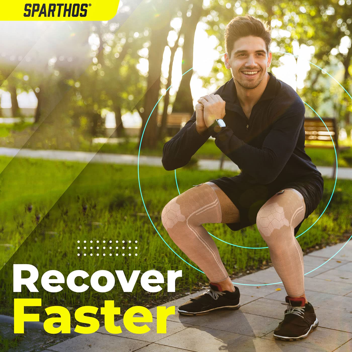 ✅ PAIN RELIEF AND FAST RECOVERY - Recommended by trainers and doctors, Sparthos sleeves delivers effective relief from muscle soreness, thigh, knee, calf pain, shin splints, leg cramps and more. Get through your day without pain and discomfort.