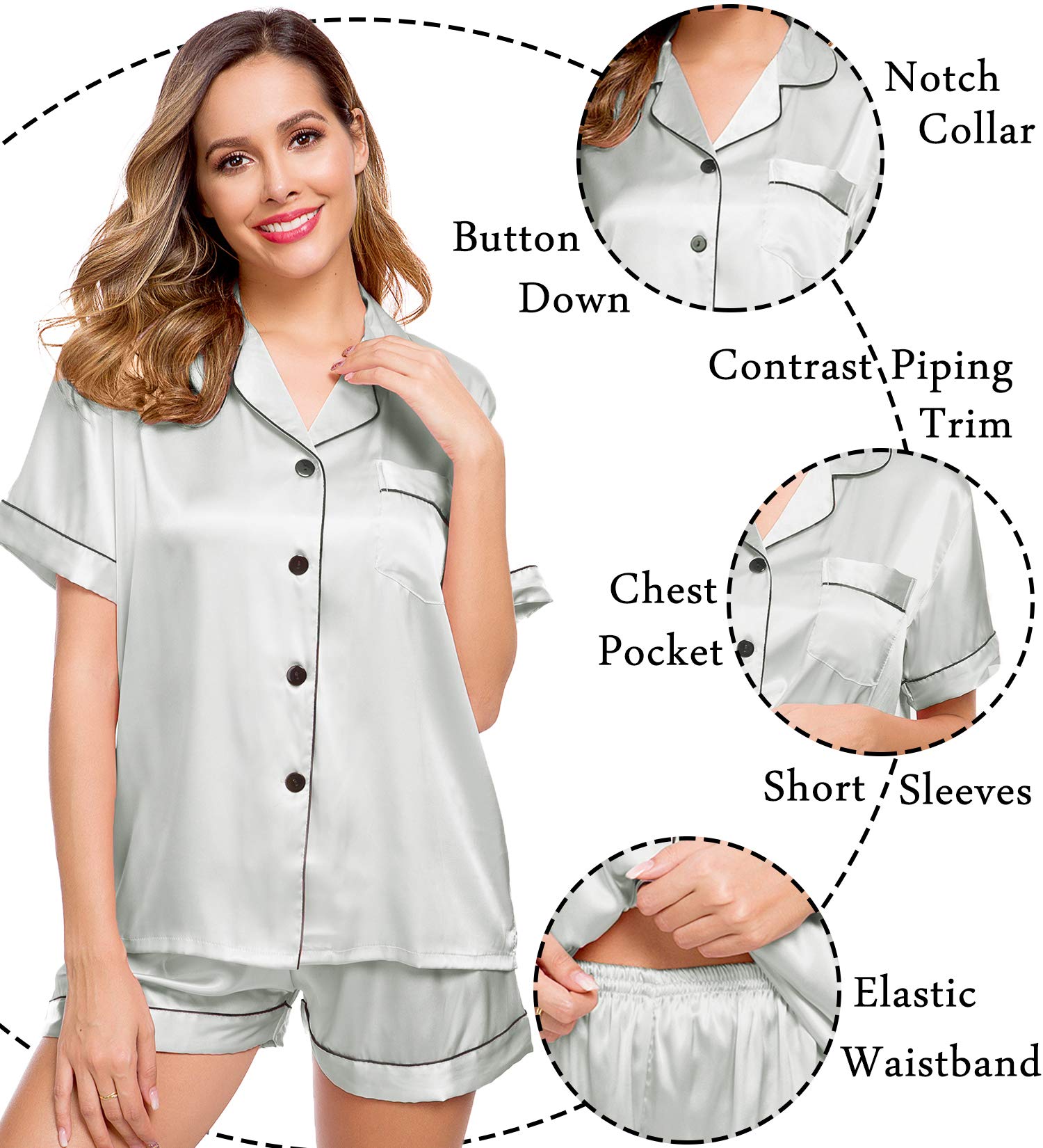 Occasion: Women's Short Sleeve Silk Satin Pajamas Set, which is suitable for daily wearing and easy to match. This ladies silk pajama sets are lightweight and easy to carry. Comfortable and suitable for lounging and sleeping, pajama party, girls day, bridal sleepwear, indoor, living room, bedroom, hotel, vocation, travel, and daily sleepwear.