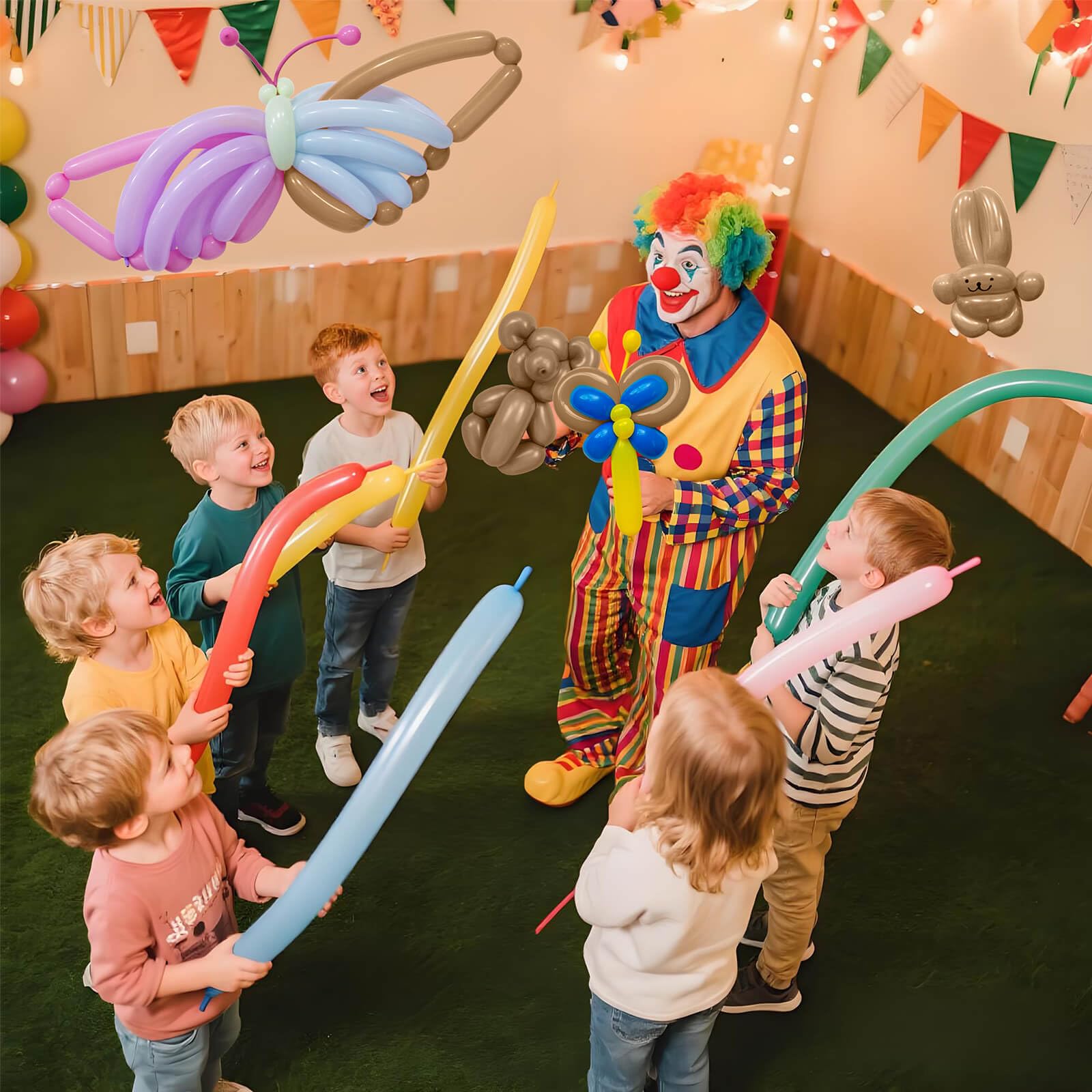 THE PACKAGE INCLUDES: 100 long balloons for balloon animals,can be shaped into any interesting sculpture or animal for professional balloon twisters and artists.