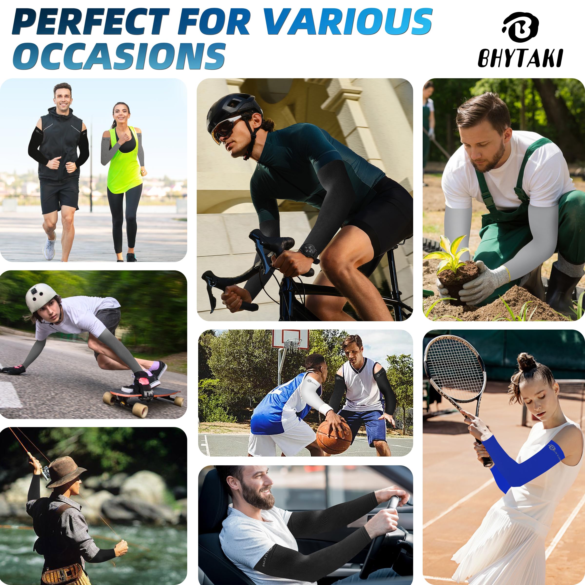 【Arm Sleeves UPF50+ Protection Design】Our arm sleeves set contains - 1 pairs of Black+1 pairs of Dark Gray+1 pairs of White+1 pairs of Treasure Blue. Our UPF 50+ sun sleeves for men women are made of high-quality soft fabric with added anti-ultraviolet ingredients , can really block up to 98% of harmful UVA and UVB rays, can block harmful sunlight when playing golf, shooting, running, cycling, gardening, working, etc., and prevent skin from sunburn and aging.