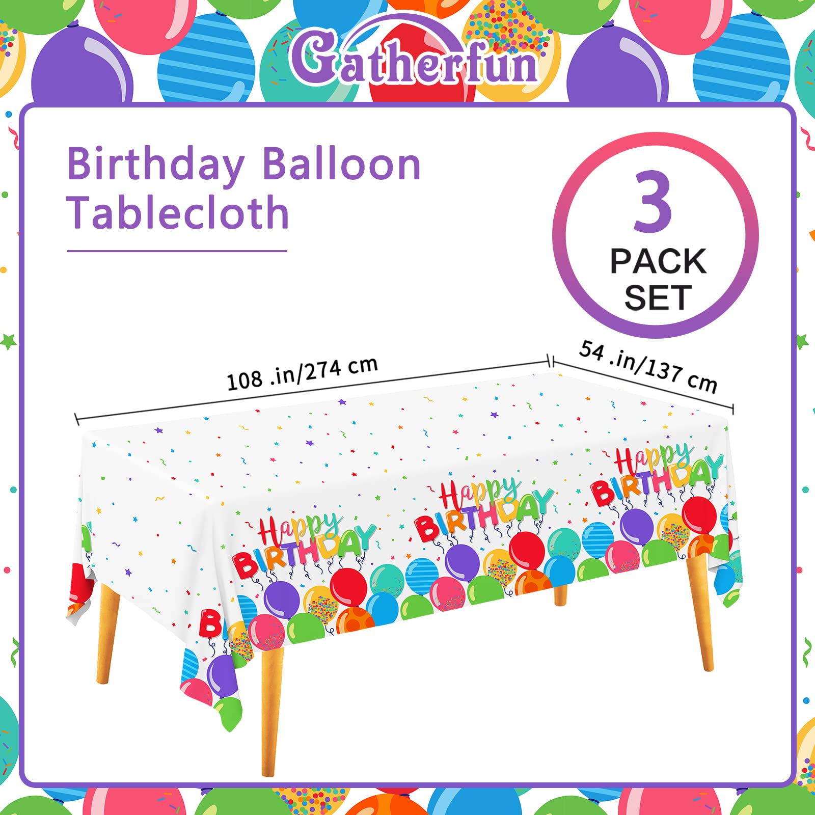 Package Included: This Kid’s Birthday tablecloth is pack of 3, suitable size with 54"x108".