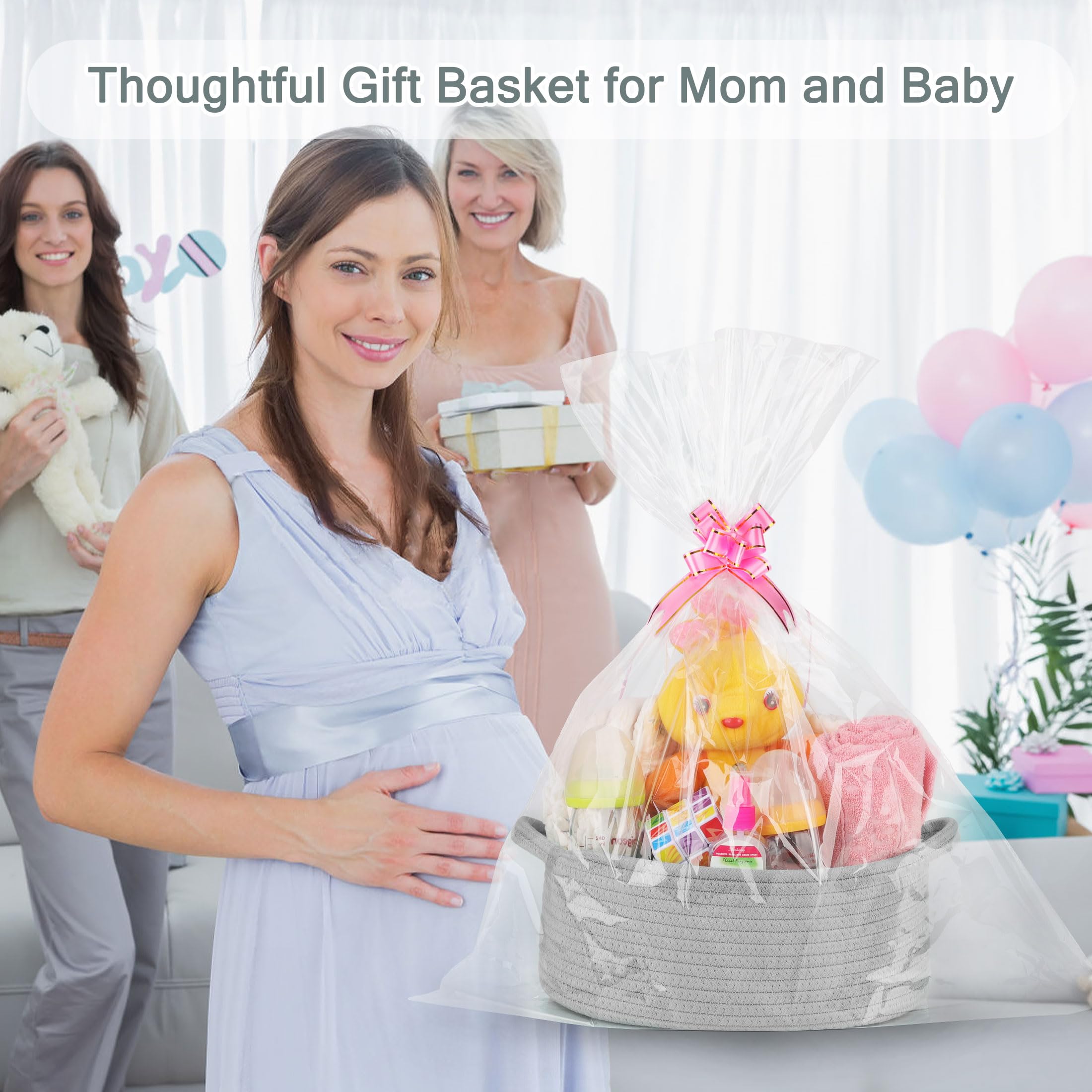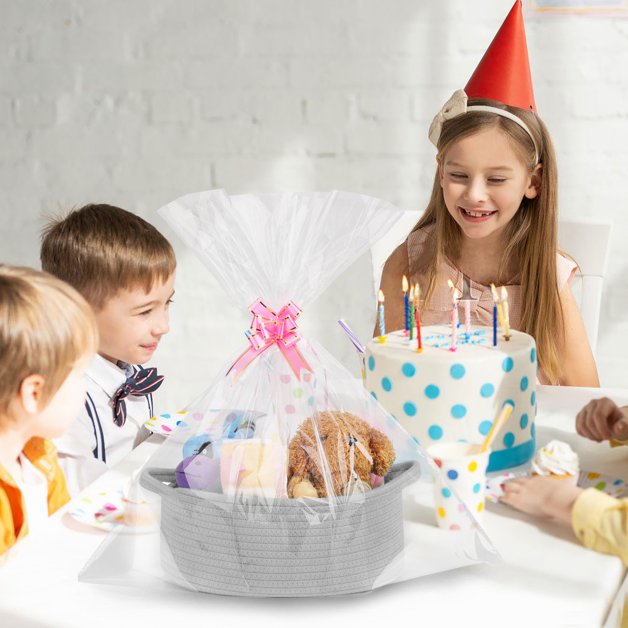 【Best Gift Options】 Our woven gift basket comes with one clear cellophane bag and three ribbons of different colors, which is very convenient for making gifts. It is a perfect choice for Birthdays, Baby Showers, Mother's Day, Father's Day, Valentine's Day, Graduation Gifts, Easter and Christmas. This small storage basket itself is a great gift.