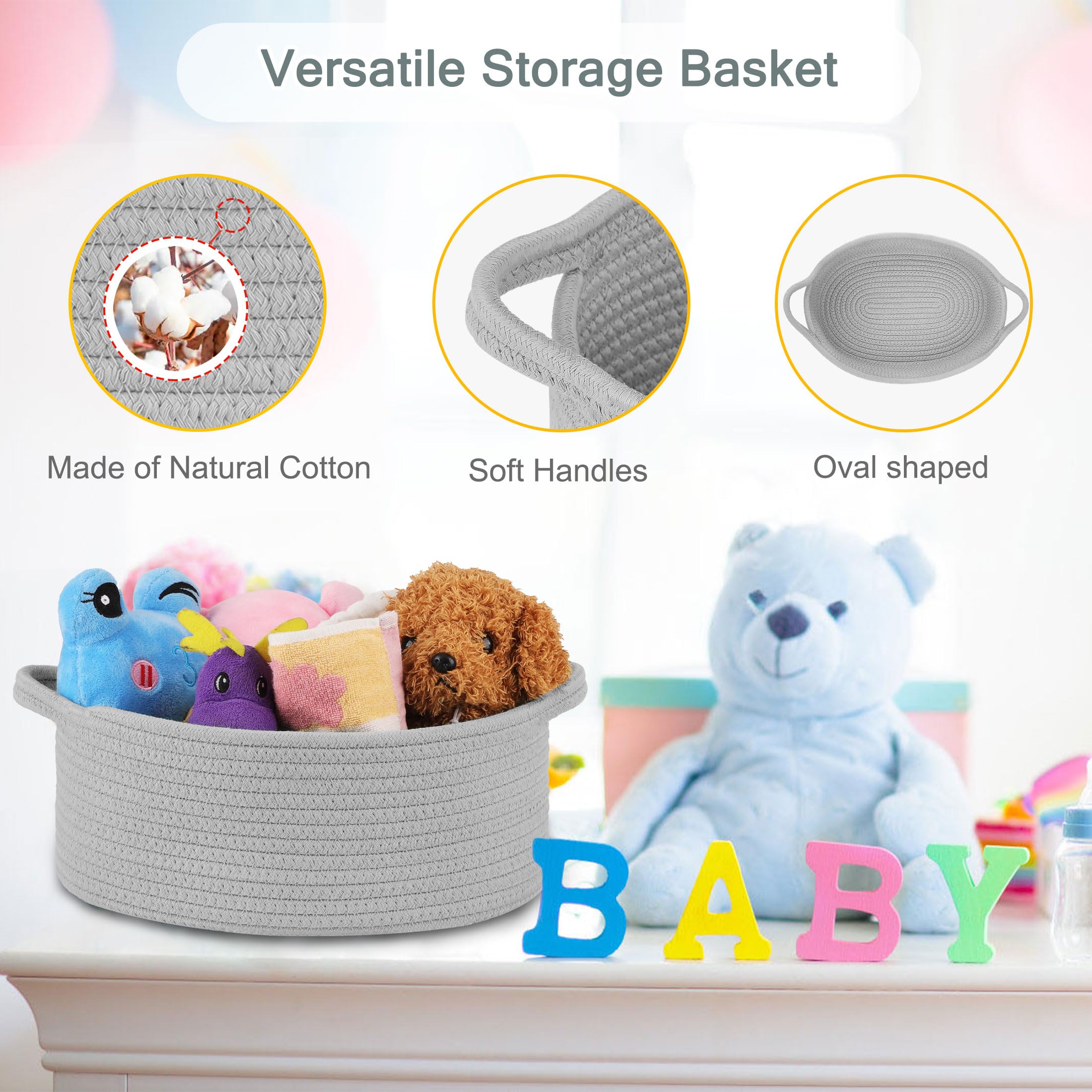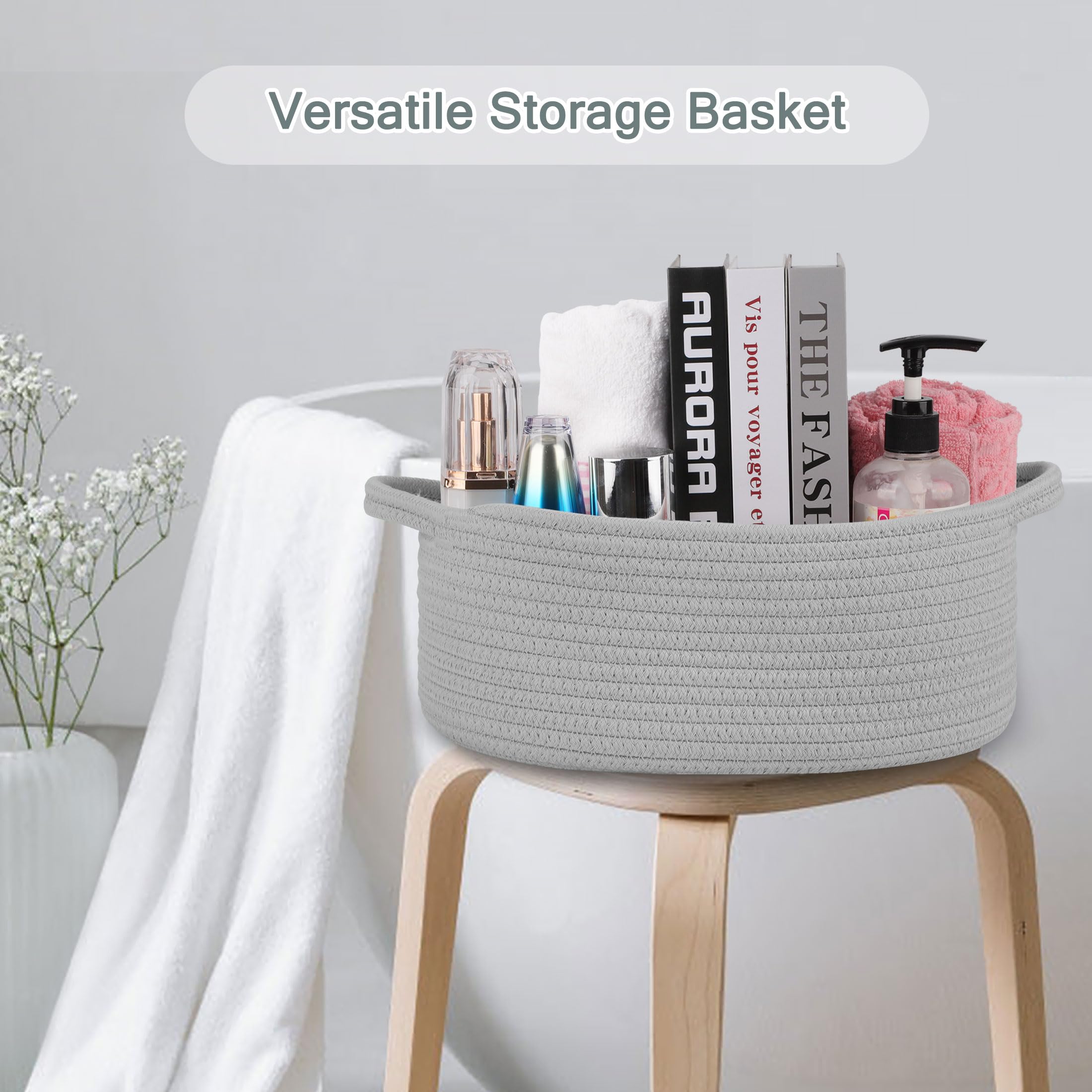【Versatile Storage Basket】 Our rope storage basket is the perfect organizer for keys, wallets, diapers, books, remotes, toys, makeups, and more. You can use it as a baby basket, end table basket, shelf storage basket, office desk basket, basket for bathroom, kids' toy basket, book basket, shallow basket, and more. It can also be used as a pet toy basket for cats and dogs.