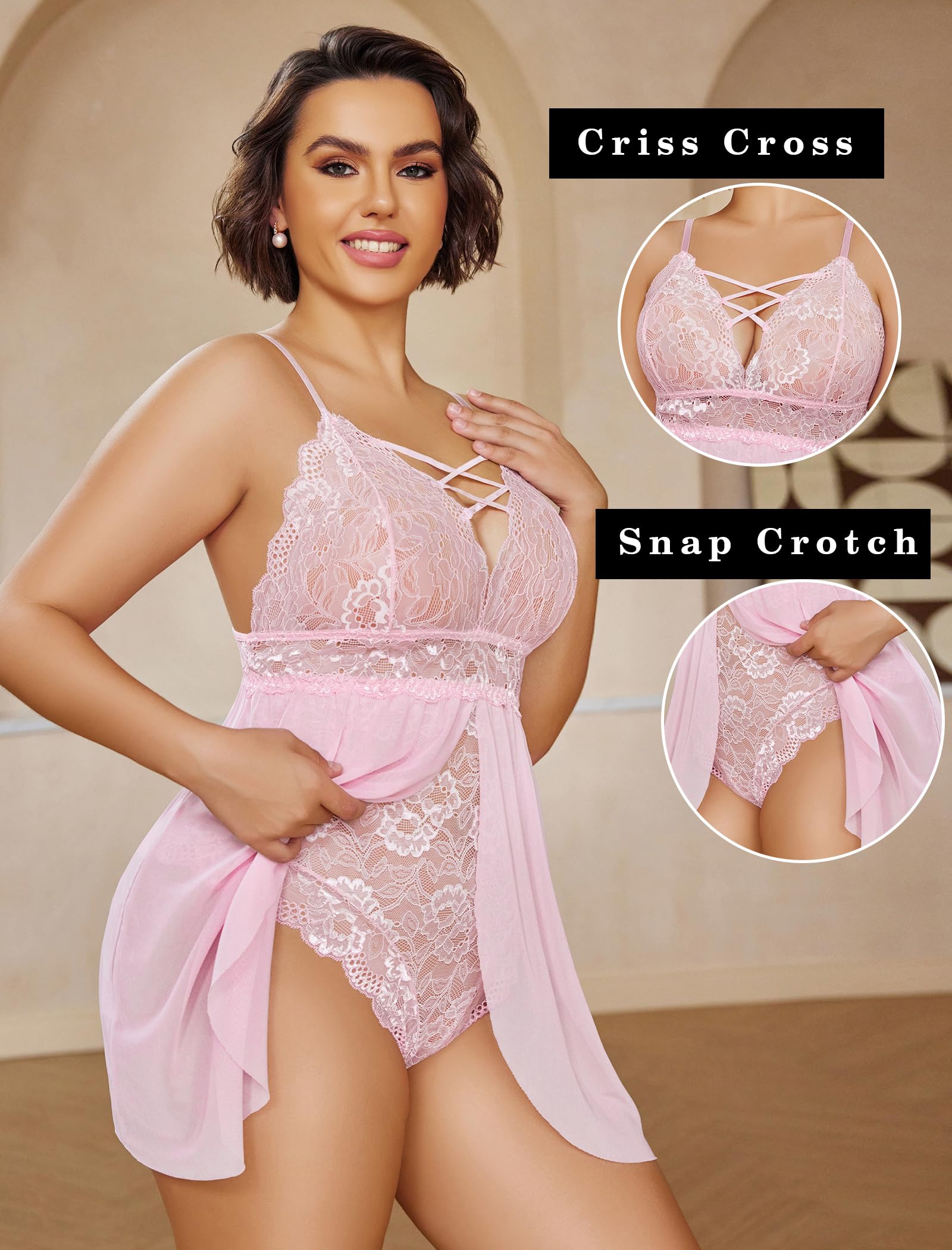 Details: Sexy babydoll lingerie with full lace cups and criss-cross detailing, adjustable spaghetti straps, lace underbust band, and mesh skirt with vented front, all this features allows this chemise easy to fit and comfortable to wear