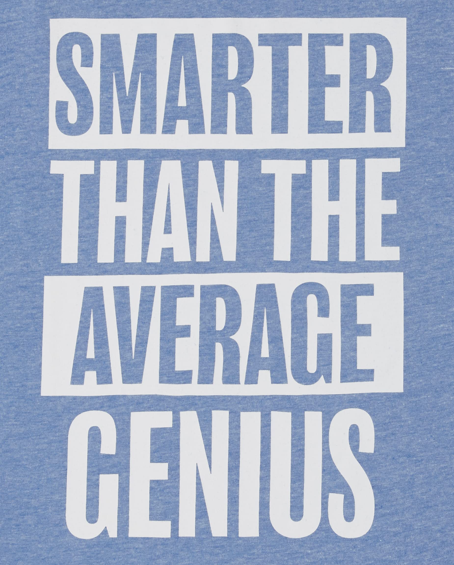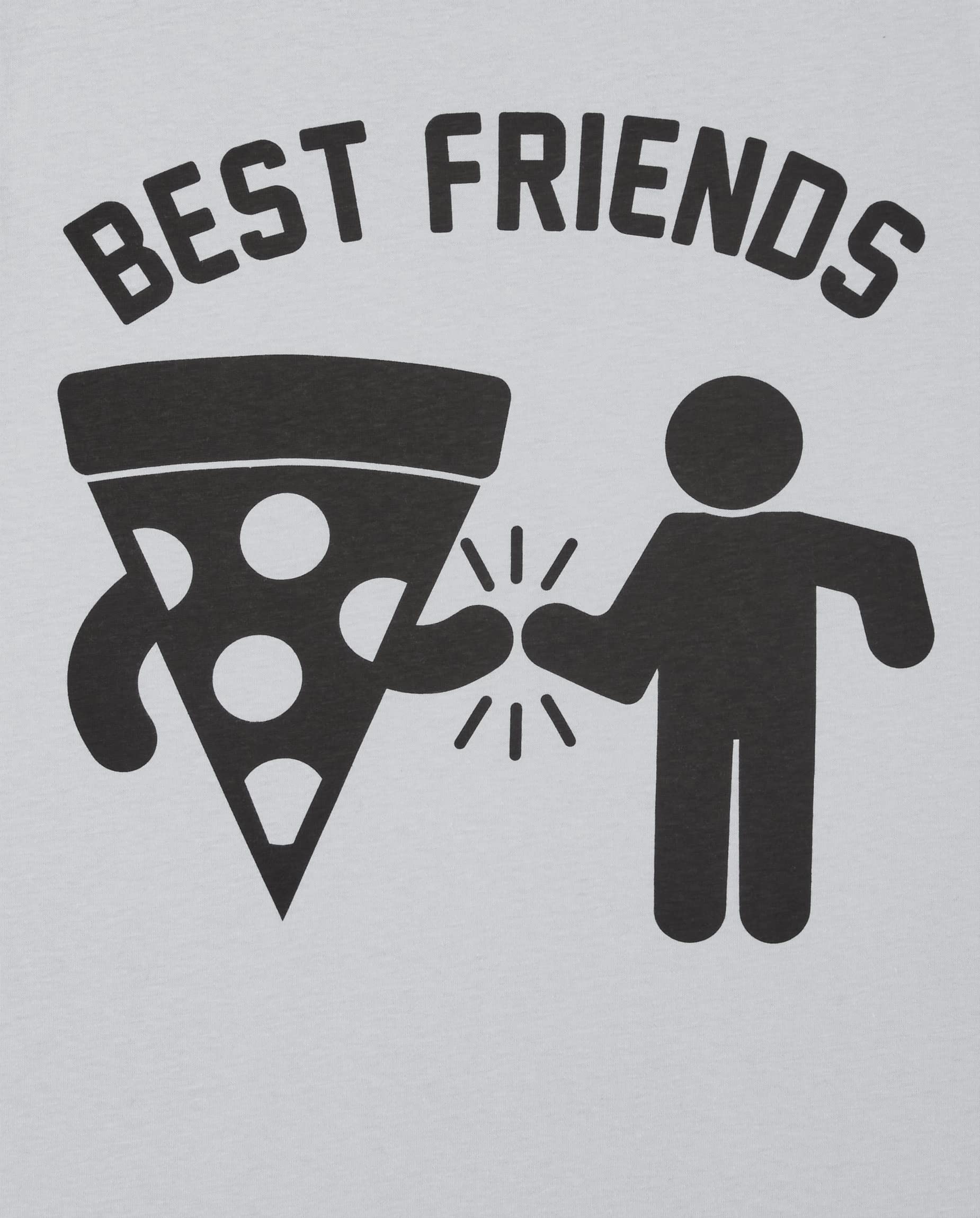 Pack of 2 graphic tees includes: 1 graphic tee with 'Smarter Than The Average Genius' graphic design at front; 1 graphic tee with 'Best Friends' and pizza with person graphic design at front