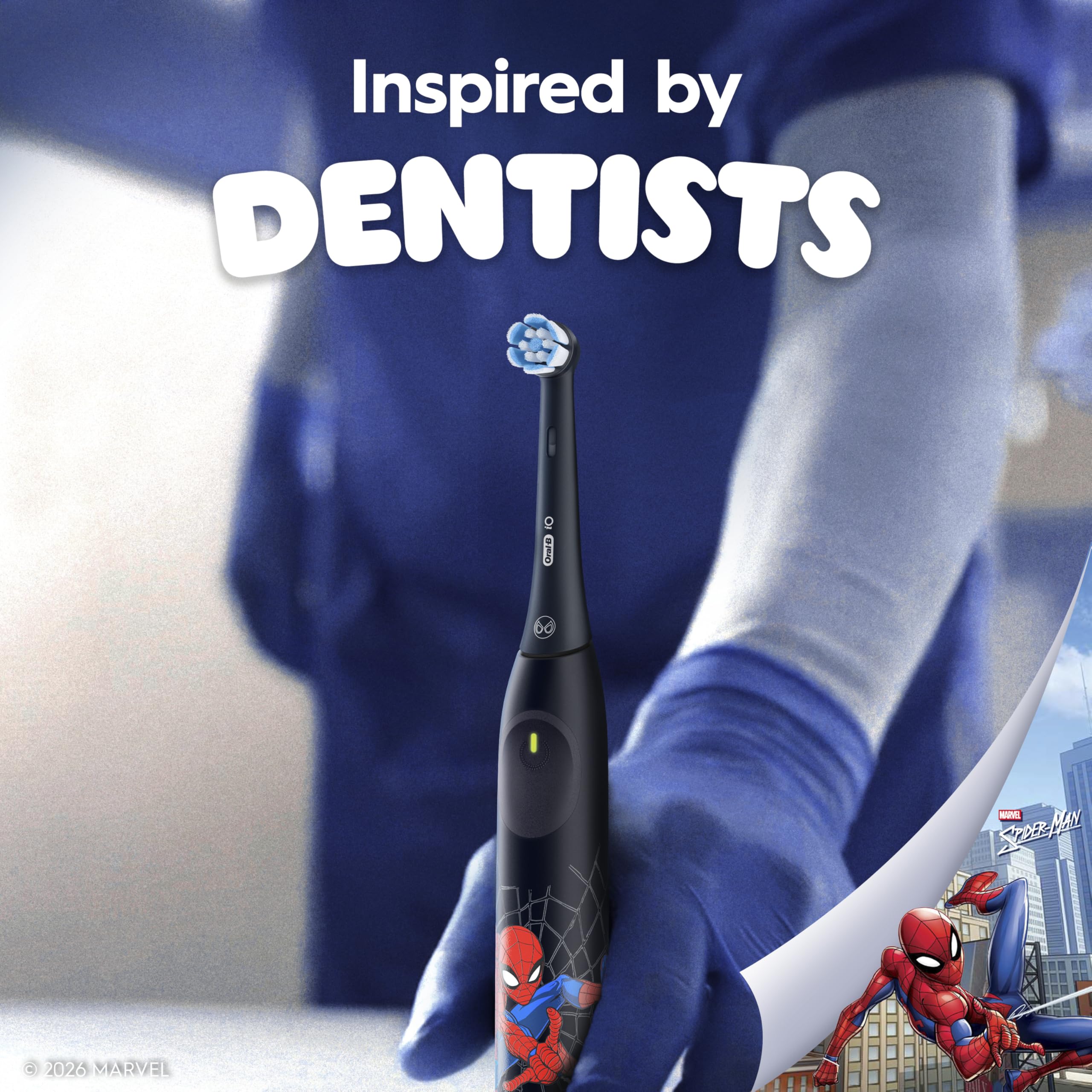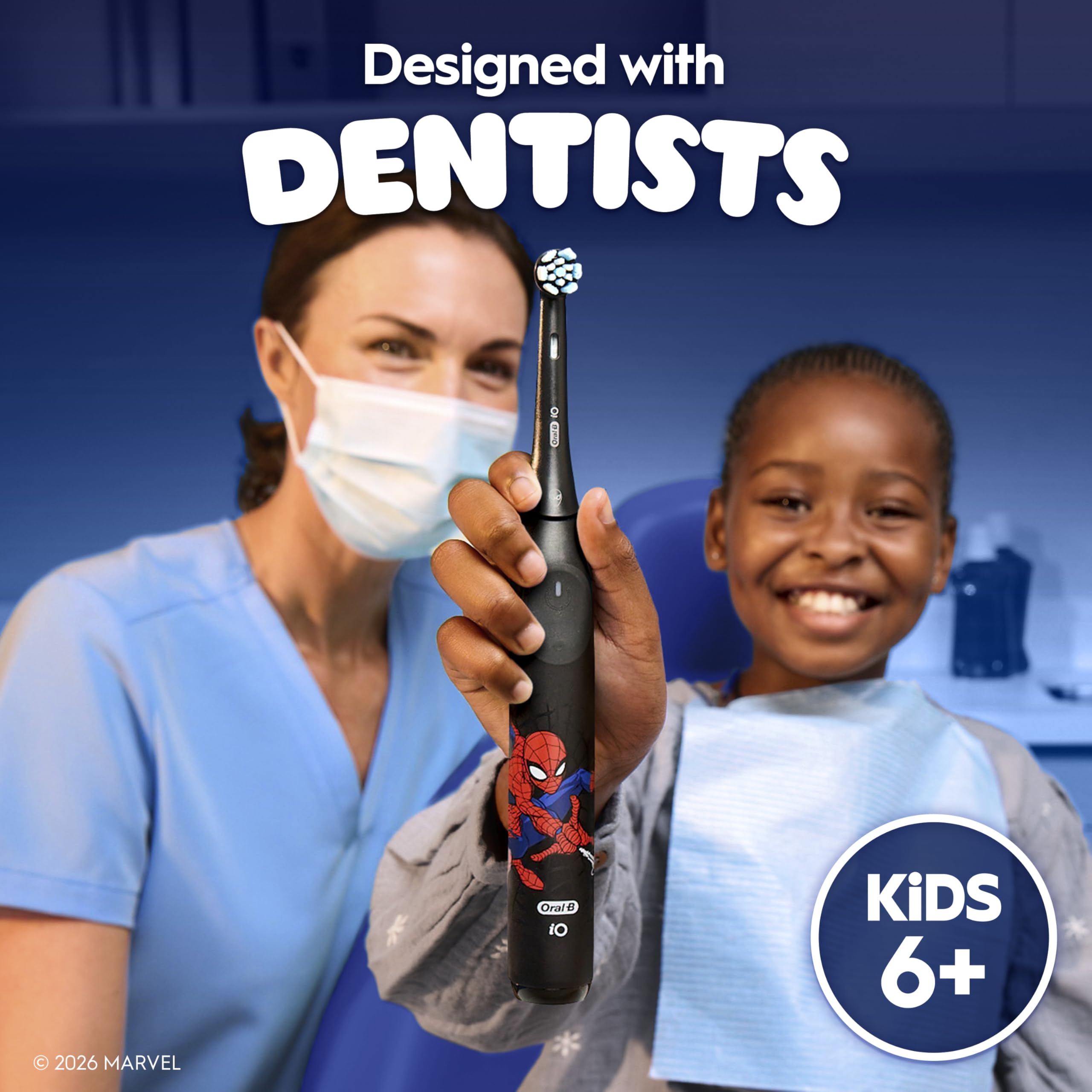 The Oral-B iO Kids Spiderman Limited combines gentle micro vibrations with Oral-B's dentist inspired round brush head to remove more plaque in hard-to-reach areas vs. a regular manual toothbrush, and deliver powerful cavity protection for kids 6+. It is designed to teach kids to become independent brushers and develop healthy habits for life, with features that make brushing fun: 2-min music timer, automatic gum pressure sensor, and 3 cleaning settings. Includes a travel case to store and carry the toothbrush wherever your kids go. 9 out of 10 kids love brushing with it!