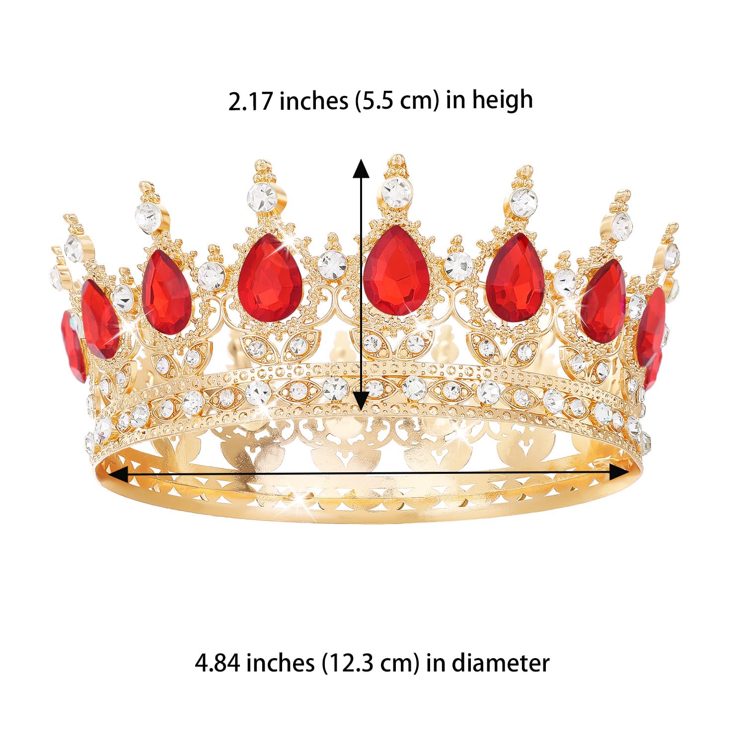 Size and Package: Our tiara crown are suitable for adult women, Diameter about: 4.72 inches, Height about: 2.0 inches, Weight about: 0.234 lb. The package includes four clips to fix the crown on your head and brings you a long and comfortable wearing experience.