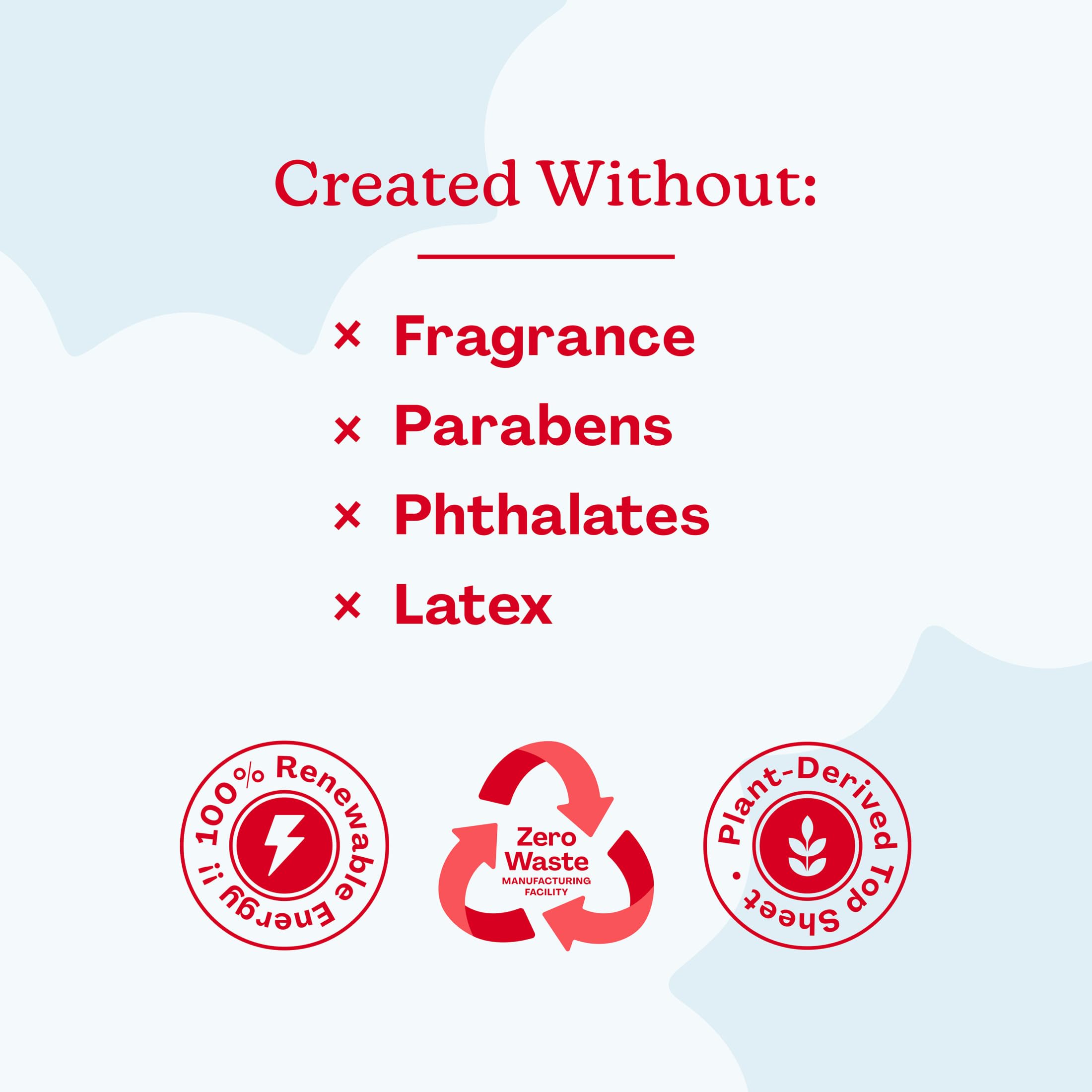 Gentle for Sensitive Skin: As always – free from harsh chemicals and gentle for even the most sensitive skin. They are Free of: Parabens, Phthalates, Elemental Chlorine, Fragrance, Latex, & Formaldehyde Donors, and are Hypoallergenic.