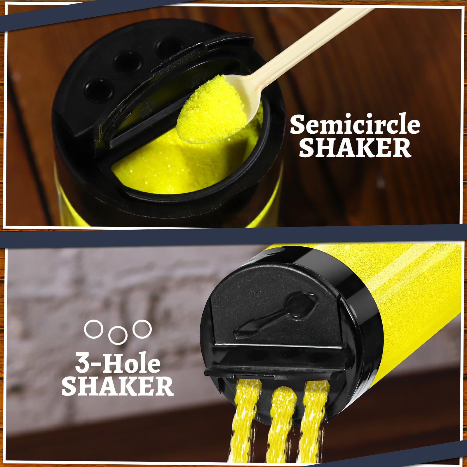 Convenient Shaker Jar: Glitter come in an easy-pour shaker Jar, with two kinds of shakers available on lid, and sealed tightly on top by aluminium paper, also with foam gasket inside the lid, no leaking.