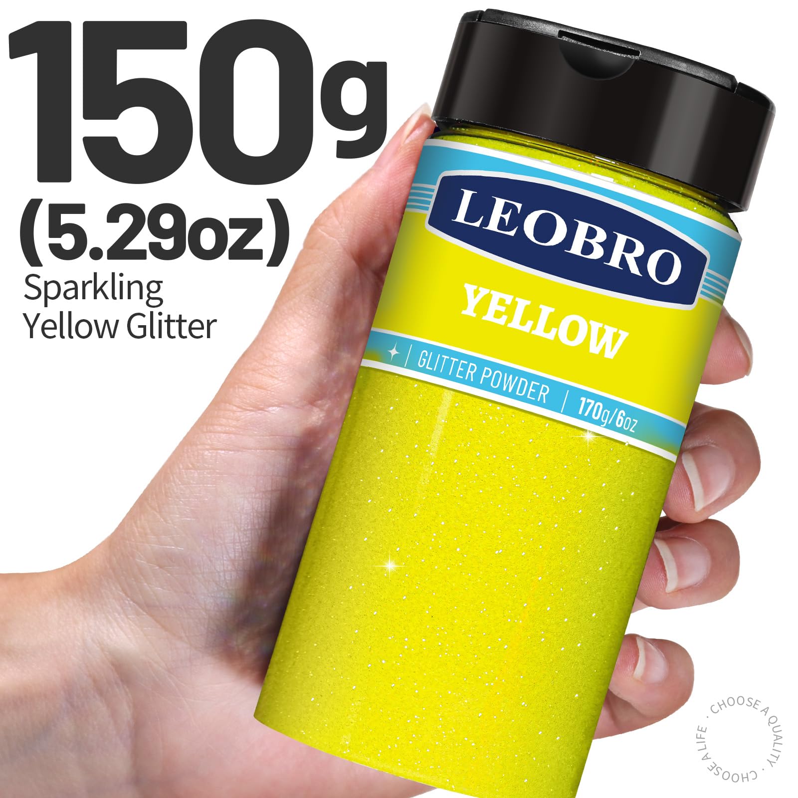 Shiny Fluorescent Yellow Glitter: 150/5.29oz yellow glitter, with fluorescent effect, bright and vibrant, nice addition to art pieces; filled fully, can support abundant DIY projects.