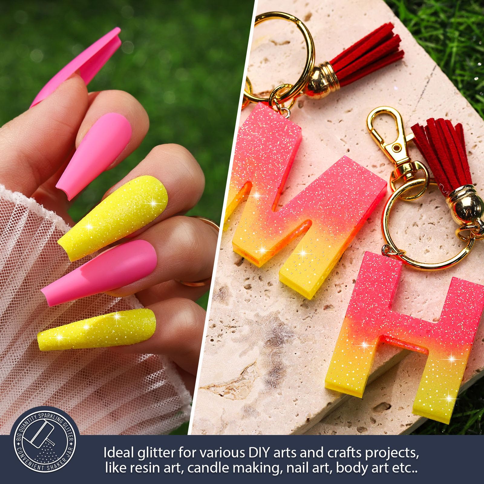 Ideal Glitter for Crafts: Perfect resin glitter, to make tumbler, jewelry, keychians, party ornaments, holiday decoration etc., great craft glitter for candle making, painting, scrapbooking, DIY glitter bouquets and so on.