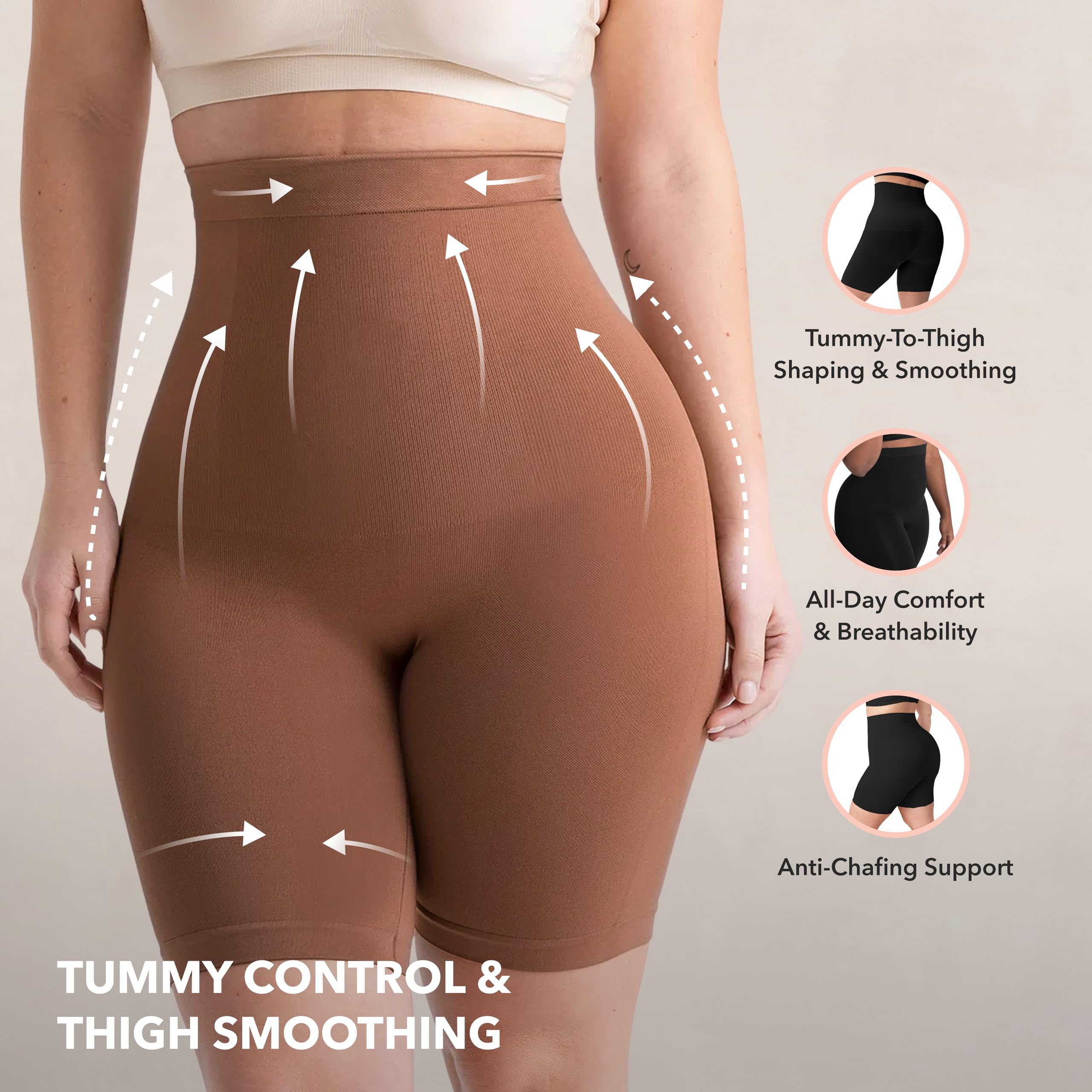 INVISIBLE SUPPORT UNDER ANY OUTFIT: Crafted with a seamless shapewear tummy control design, these shorts smooth your midsection and thighs without lines or digging. Perfect for layering, they stay invisible under tight clothes and hold up beautifully, even after machine washing.