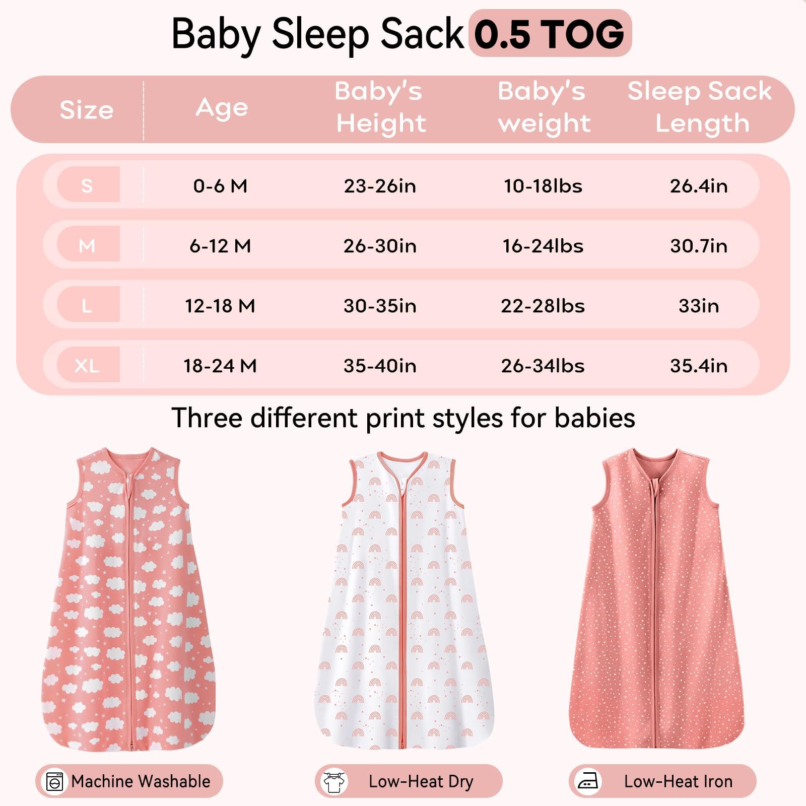 UPGRADED PROCESS-Compared with ordinary one, our 100% combed cotton sleep sack brings 30% optimization in both comfort and breathability. Pre-washing technology effectively reduces the shrinkage rate by 50%, which ensures the baby sleeping bag can be machine washed and dried at low temperatures without distorting. We care not only for babies, but also for busy parents!