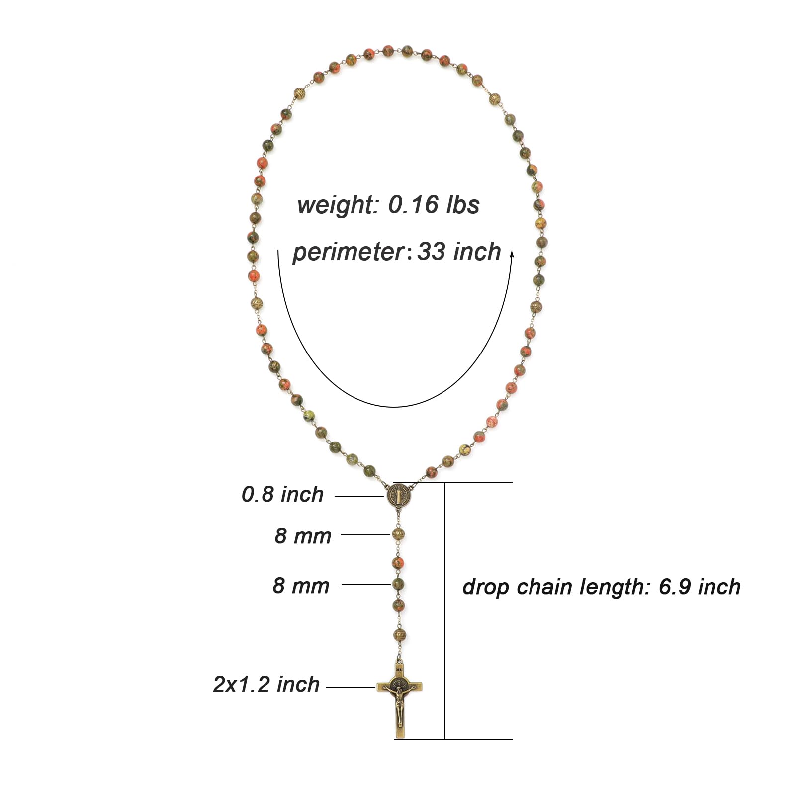 Natural Stone: The Hail Mary Beads are made of 8mm Unakite gemstone beads, while Our Father Beads are made of zinc alloy metal beads making it convenient to identify the completion of a decade