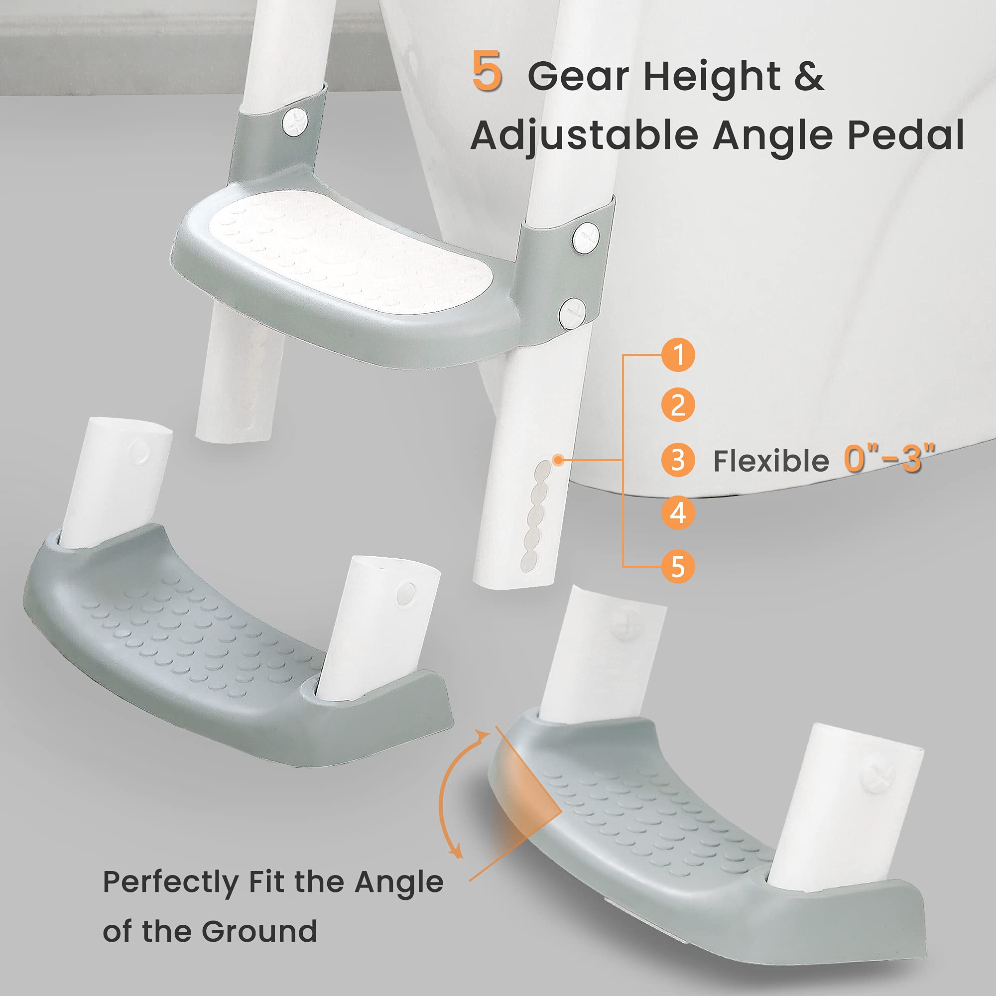 【JASSONE POTTY TRAINING SEAT】 - You can easily raise or lower the children's toilet ladder by 0-3 inches, with a footrest that can move back and forth, our product will perfectly fit to toilets of any height. (Package includes ducks)