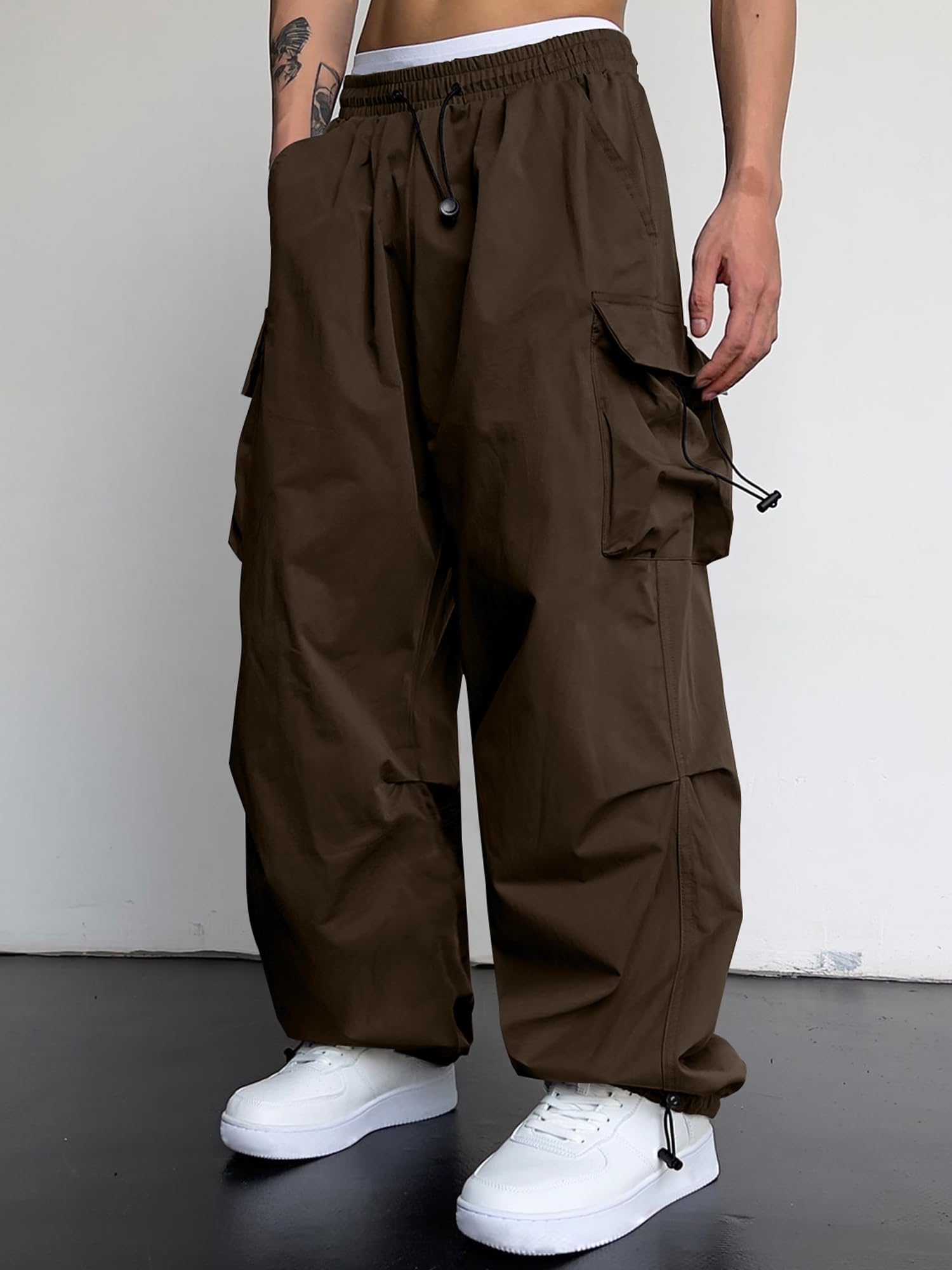 Trendy Design: JMIERR's men's cargo pants blend parachute pants design with a wide flare leg, reminiscent of 90s hippie grunge style. Featuring a unique and bold look, these pants include an elastic waistband, adjustable drawstrings, and 4 pockets, making them a super chic addition to any stylish men's wardrobe.