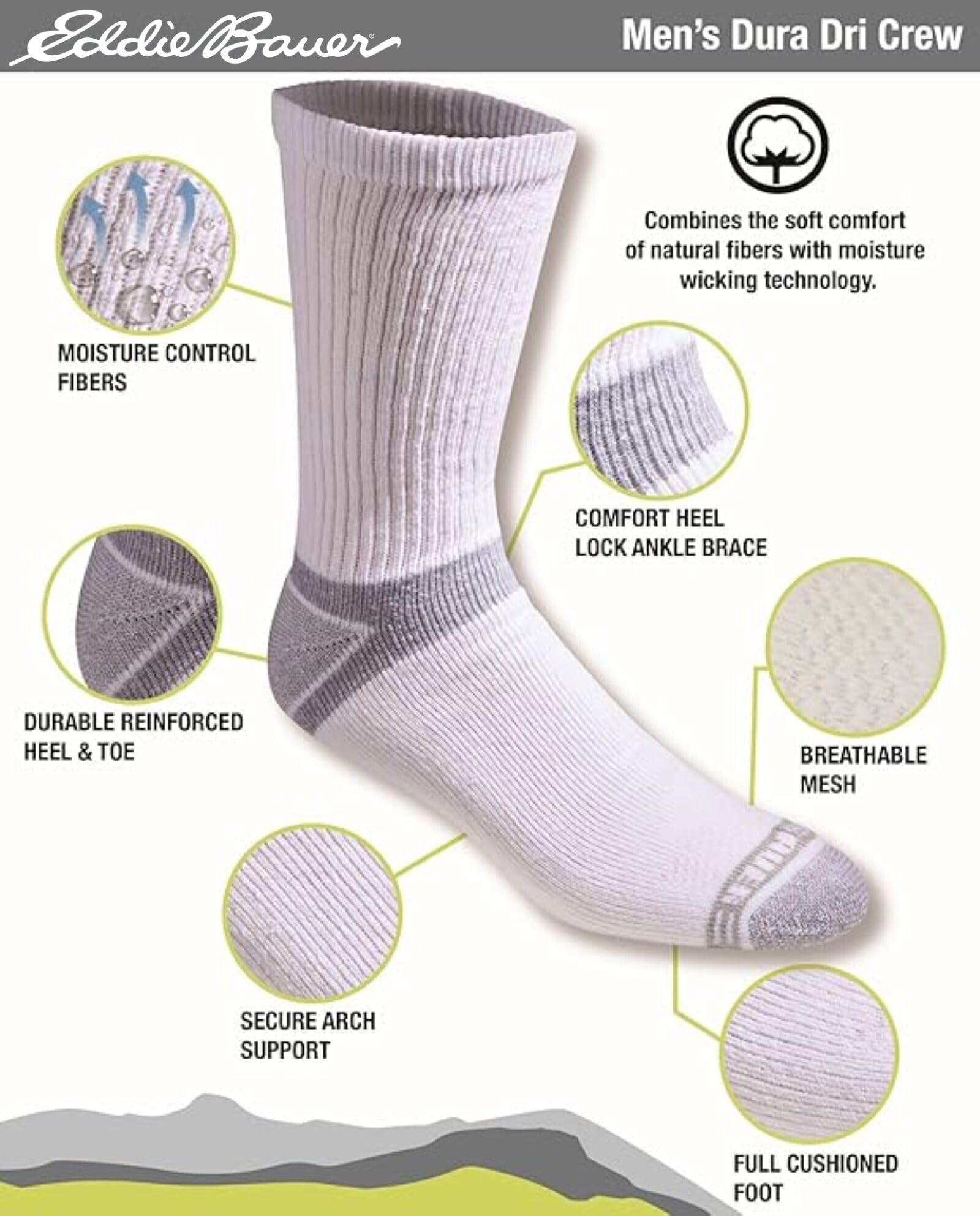 Description Our Eddie Bauer Menβs Dura Dri crew is specifically engineered to provide superior comfort, durability, and performance with advanced stability and moisture control technology.