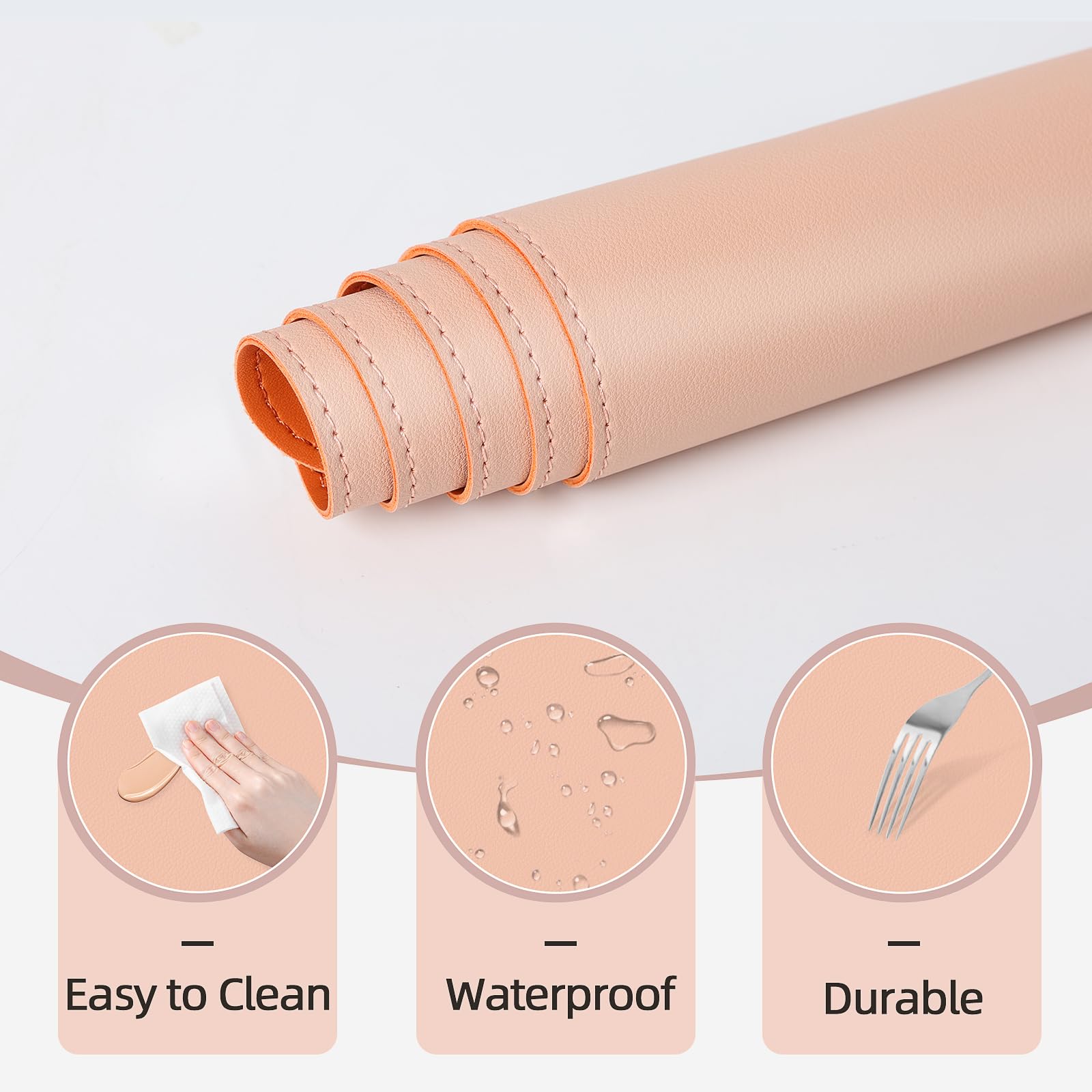 【23.6 x 11.8 in Leather Make Up Mat】TOHONFOO vanity mats are made of durable PU leather material, whitch can protect your vanity table from scratches, stains, spills, heat and wear