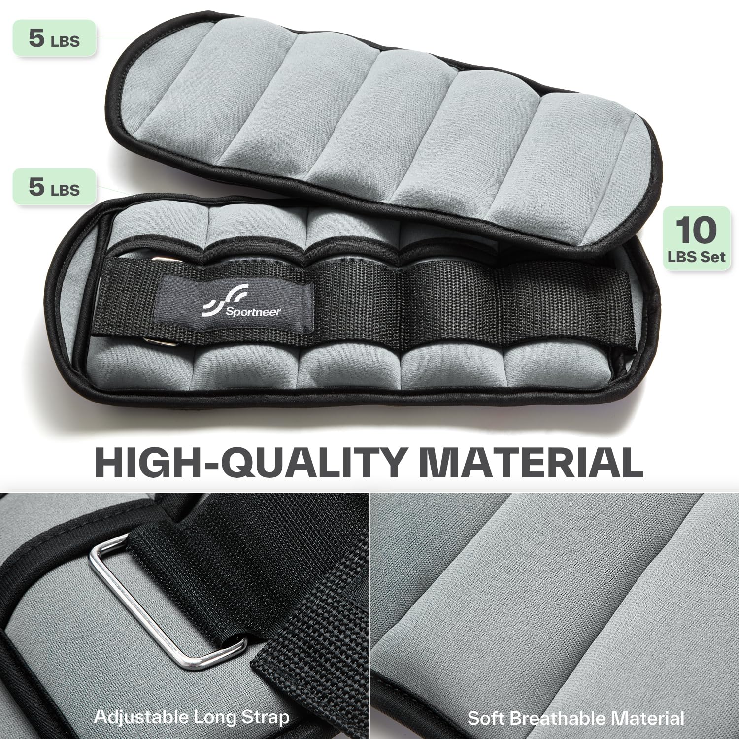 QUALITY & COMFORT: The Sportneer ankle weights were made of neoprene exterior, reinforced stitching, sturdy outer trim and moisture absorbing material inside, soft, breathable and comfortable, you could feel its softness when hold in your hands.