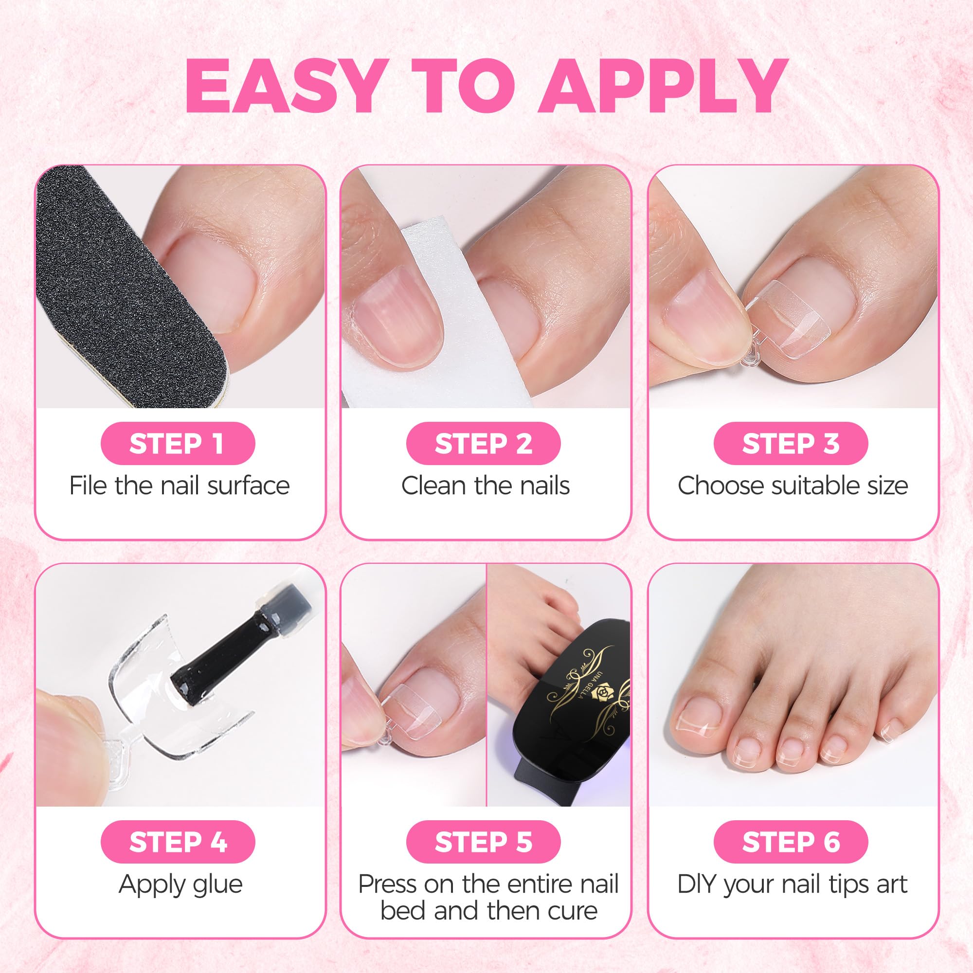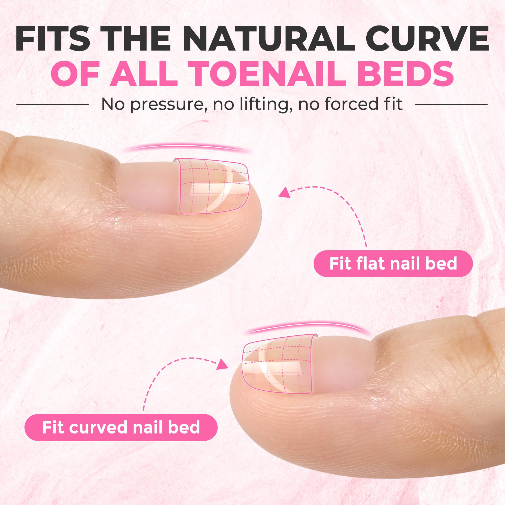 ❤ Ultra-Flexible & Break-Resistant: Crafted from premium soft gel material, these gel toe nail tips provide exceptional durability while maintaining natural flexibility. Unlike rigid alternatives, these gel toe nail tips bend with your natural nail movement to prevent cracking or popping off, ensuring long-lasting wear. The thin back edge creates a seamless transition for a smooth, natural-looking finish, allowing these gel toe nail tips to feel lightweight and comfortable inside closed-toe shoes or open-toe sandals.