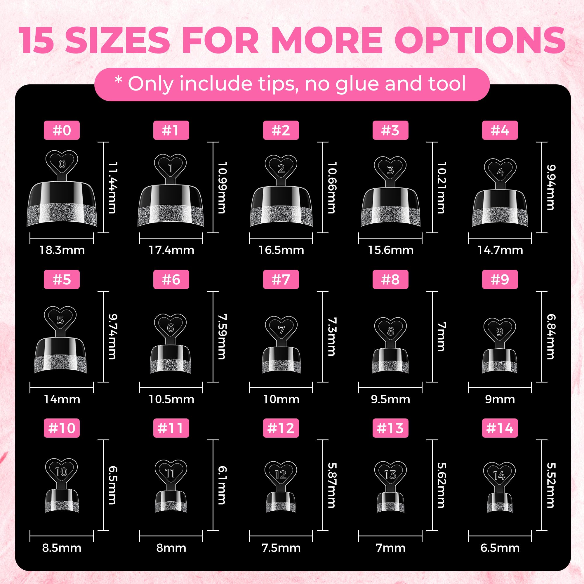 ❤ 504 Pcs with 15 Thoughtful Sizes: Say goodbye to ill-fitting toe nail tips. This set includes 504 pieces of toe nail tips across 15 graduated sizes, featuring extra-wide options specifically designed for larger toes. Whether you have narrow, standard, or wide nail beds, these toe nail tips ensure you always find the perfect match. With such an abundance of sizes, this bulk set of toe nail tips offers enough inventory for multiple full sets, making it a cost-effective solution for high-volume salon use or at-home family care.