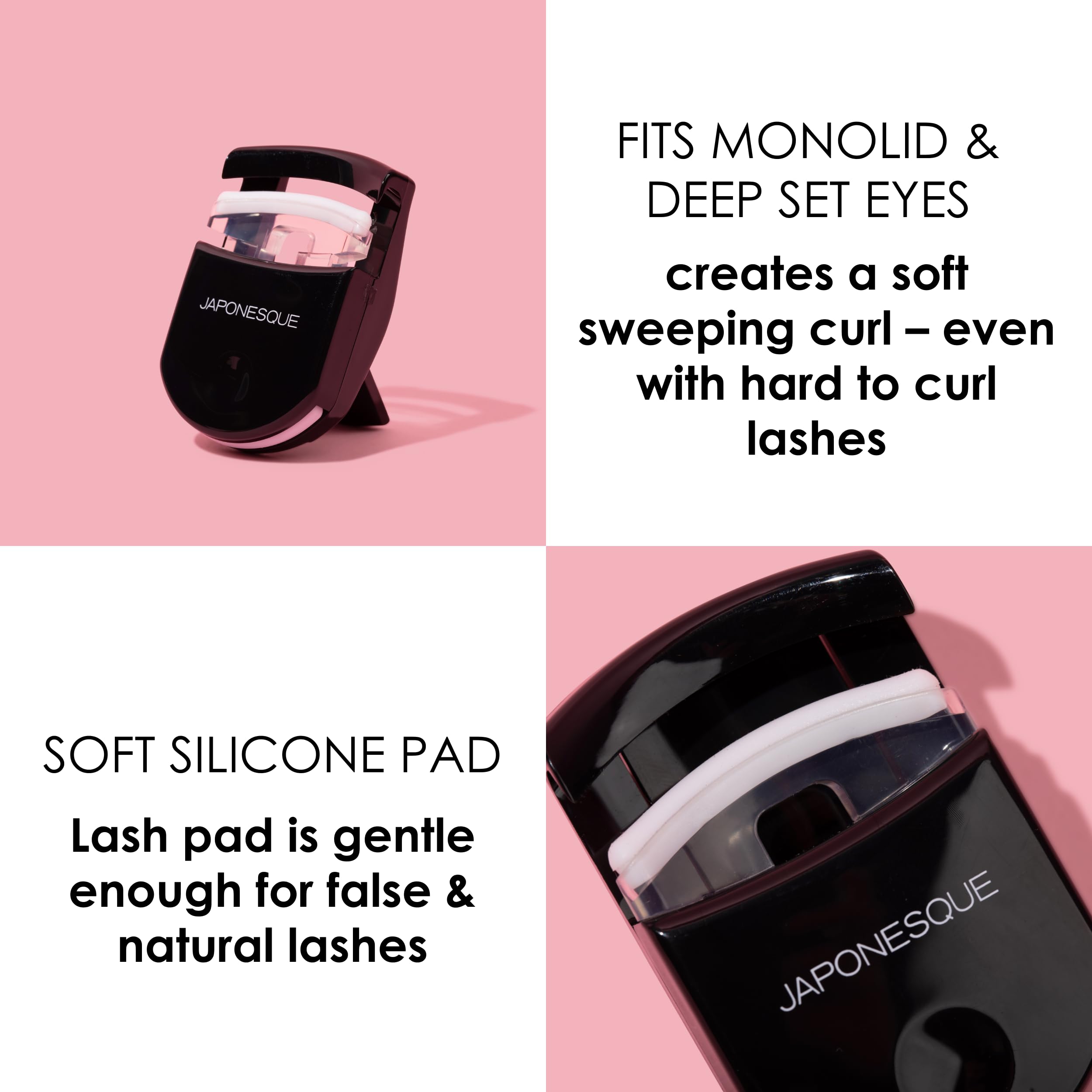 SWEEPING LASH LIFT - This mini eyelash curler creates perfect, deep-sweeping lashes AND delivers all day lash curl! Position natural or false lashes into the care and gentle squeeze the base for 5 seconds. Use before applying mascara to create soft and wispy curled lashes! Natural arch & open cage fits most eye shapes.
