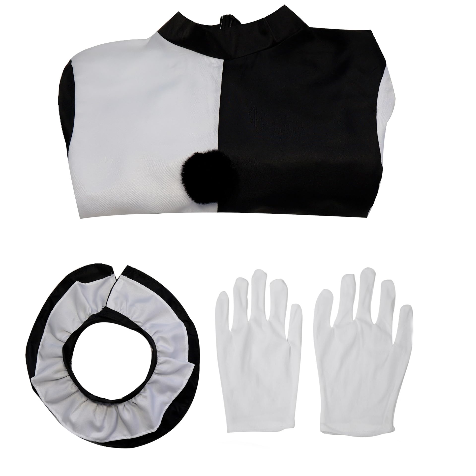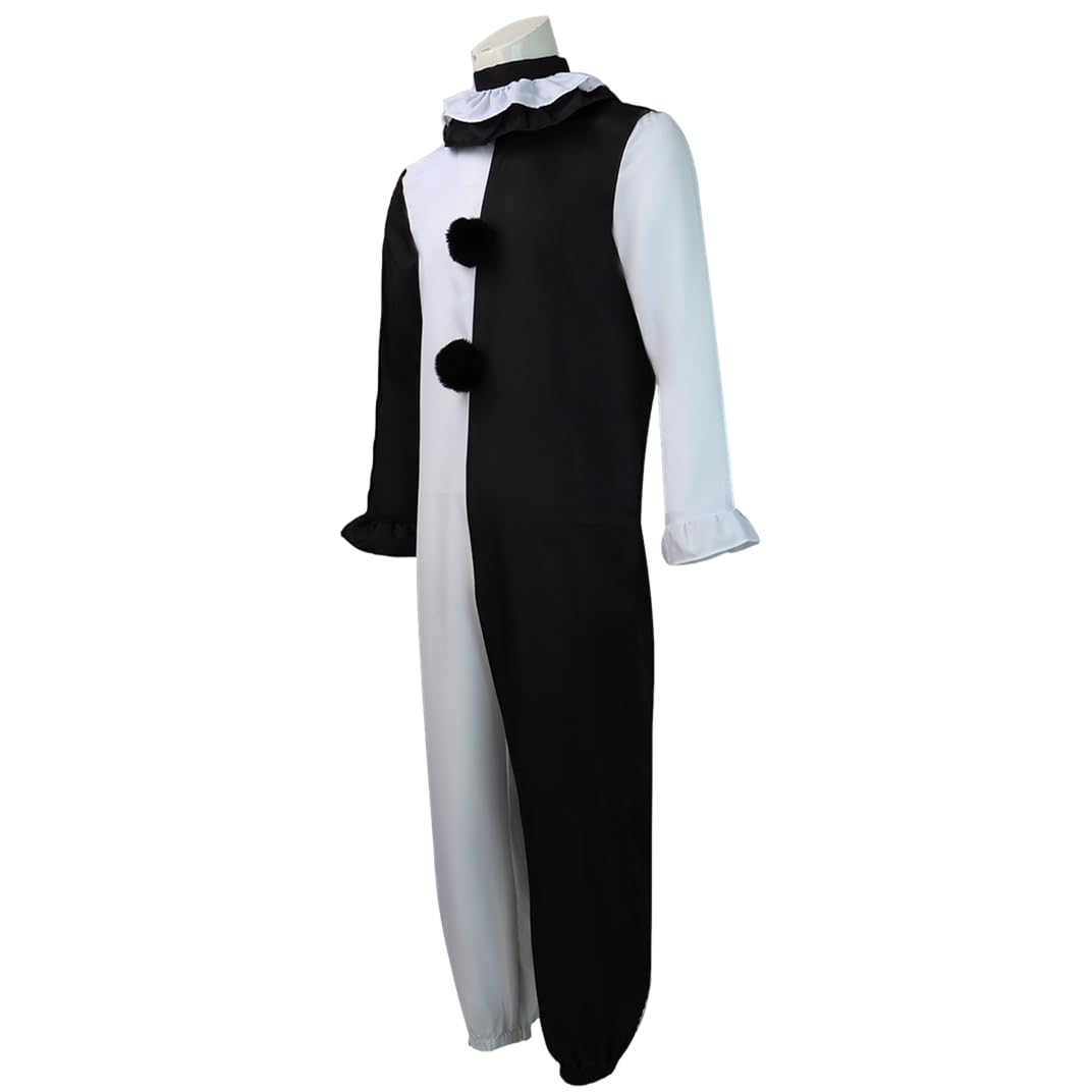 Please noteļ¼ that the packaging is shown in the second image below the main image. The clown costume set includes: color: jumpsuit: a set of jumpsuit+gloves. Color: jumpsuit/mask: one set of jumpsuit+mask+gloves