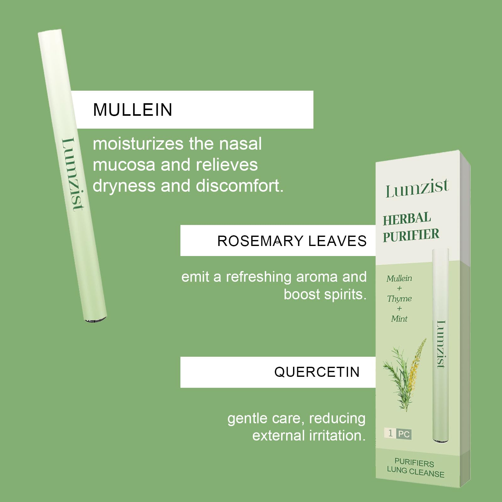 Herbal Diffuser Stick for Lung Cleasing Refreshing Oral Comfort,Herbal Diffuser Pen - Non Electric - Plant-Based Lifestyle, Oral Air Freshening with Extracts of Mullein, Thyme and Mint (1)