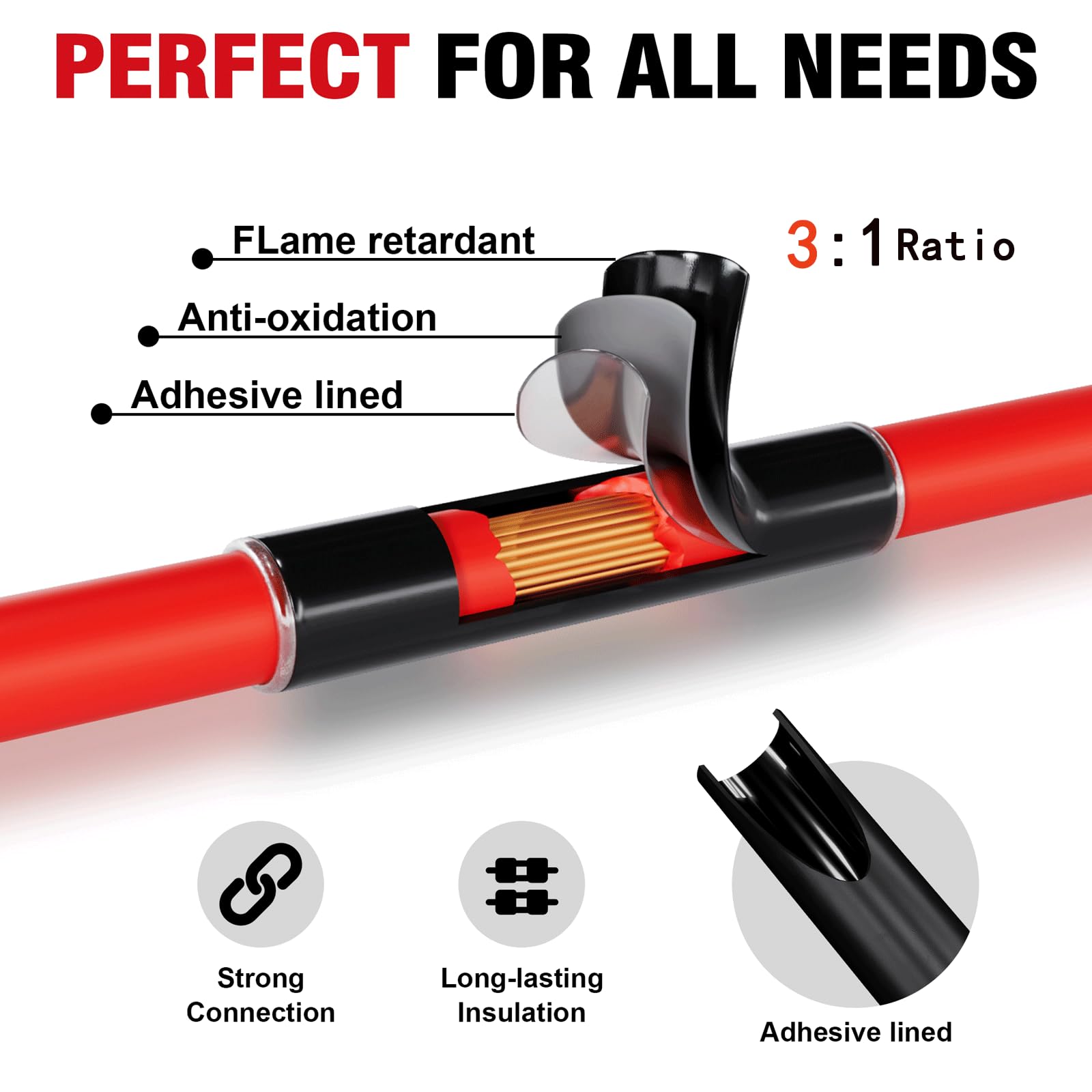 ☆『Reliable and Easy to Use:』These battery lugs with heavy duty construction improve high temperature durability and closed design seals out the moisture, ensure connection reliability; high standard flared opening for easy wire insertion. The wire shrink wraps are all pre-cut into the most common sizes, which improves your work efficiency.