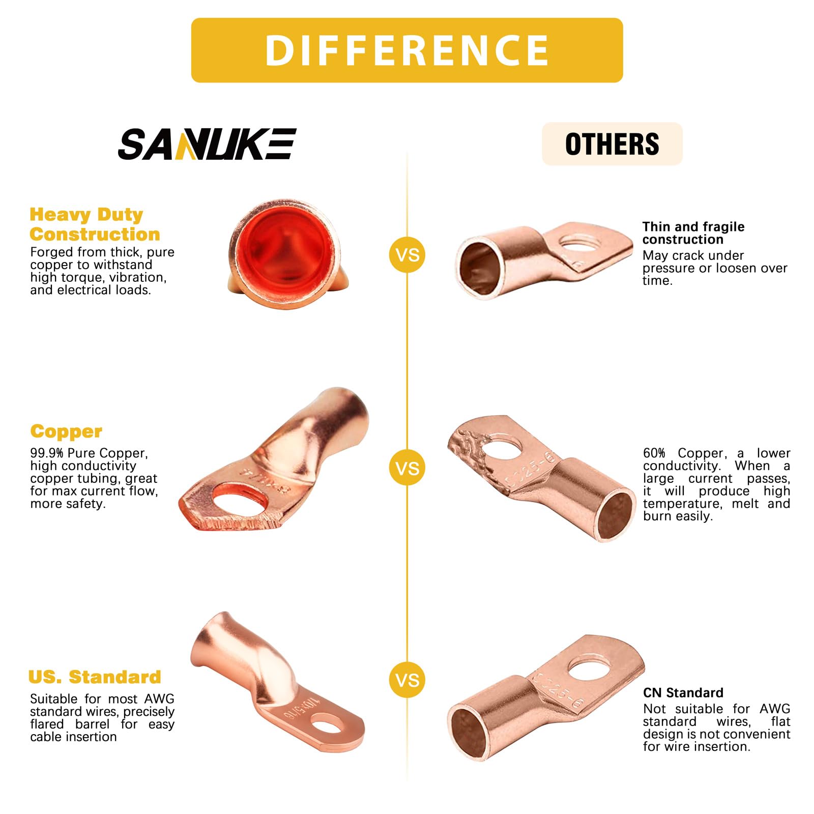 ☆『High Quality:』All the Sanuke battery cable ends are made of 100% annealed electrolytic grade copper for maximum conductivity. All the 3:1 shrink tube is well made of high quality material, thick and durable.They are both for up to 600V, 257 degrees Fahrenheit which ensures its safe and reliable.