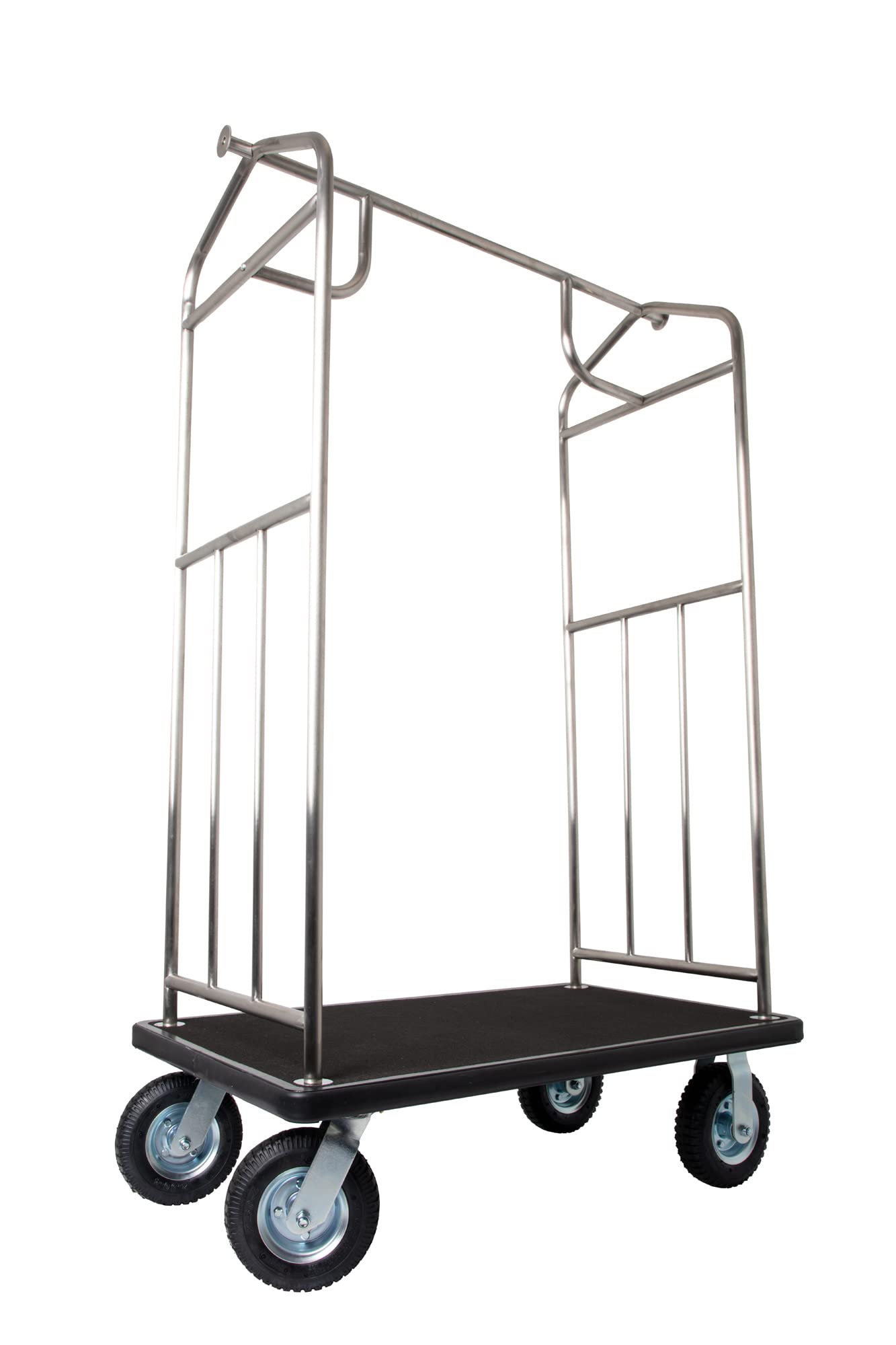 SMOOTH TRANSPORT WITH 6” AIR-FILLED TIRES: Designed for easy maneuverability, this bellman cart is equipped with 6” pneumatic wheels that provide superior shock absorption, gliding effortlessly over carpet, tile, and concrete.