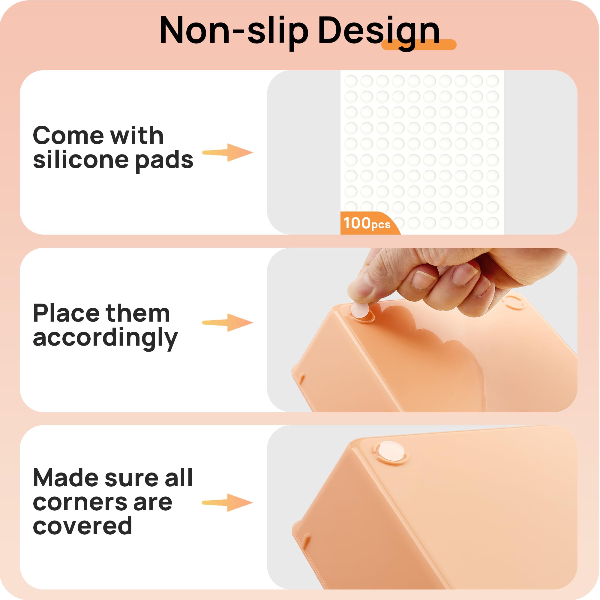【Non-Slip and Durable】Extra 200pcs silicone pads are included, just stick them on the bottom of the plastic trays for non-slip. Made of durable and clear plastic, so you can see what’s in it without digging around or making a mess, help you get a neat lifestyle.