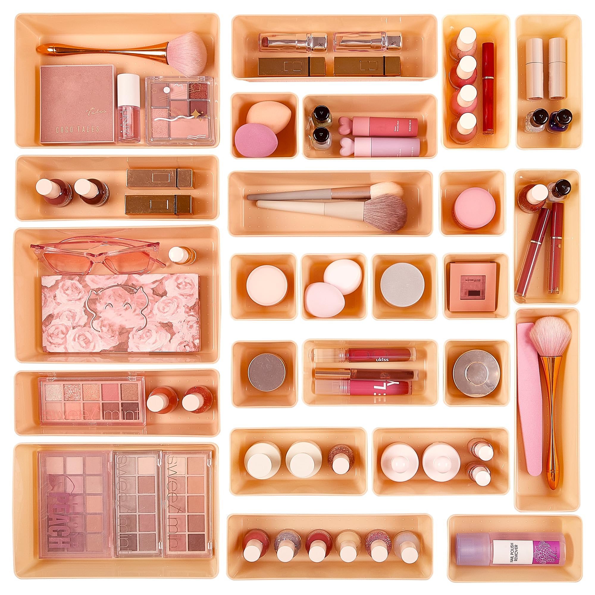 【Combination of 4 Different Sizes】One set includes 25pcs storage bins in 4 different sizes, which help you customize combinations to store items and organize drawer in shelf/ closet/ cabinet/ dresser . Includes: 9 x 6 x 2 inches (3pcs), 9 x 3x 2 inches(6pcs), 6 x 3 x 2 inches(8pcs), 3 x 3 x 2 inches(8cps).