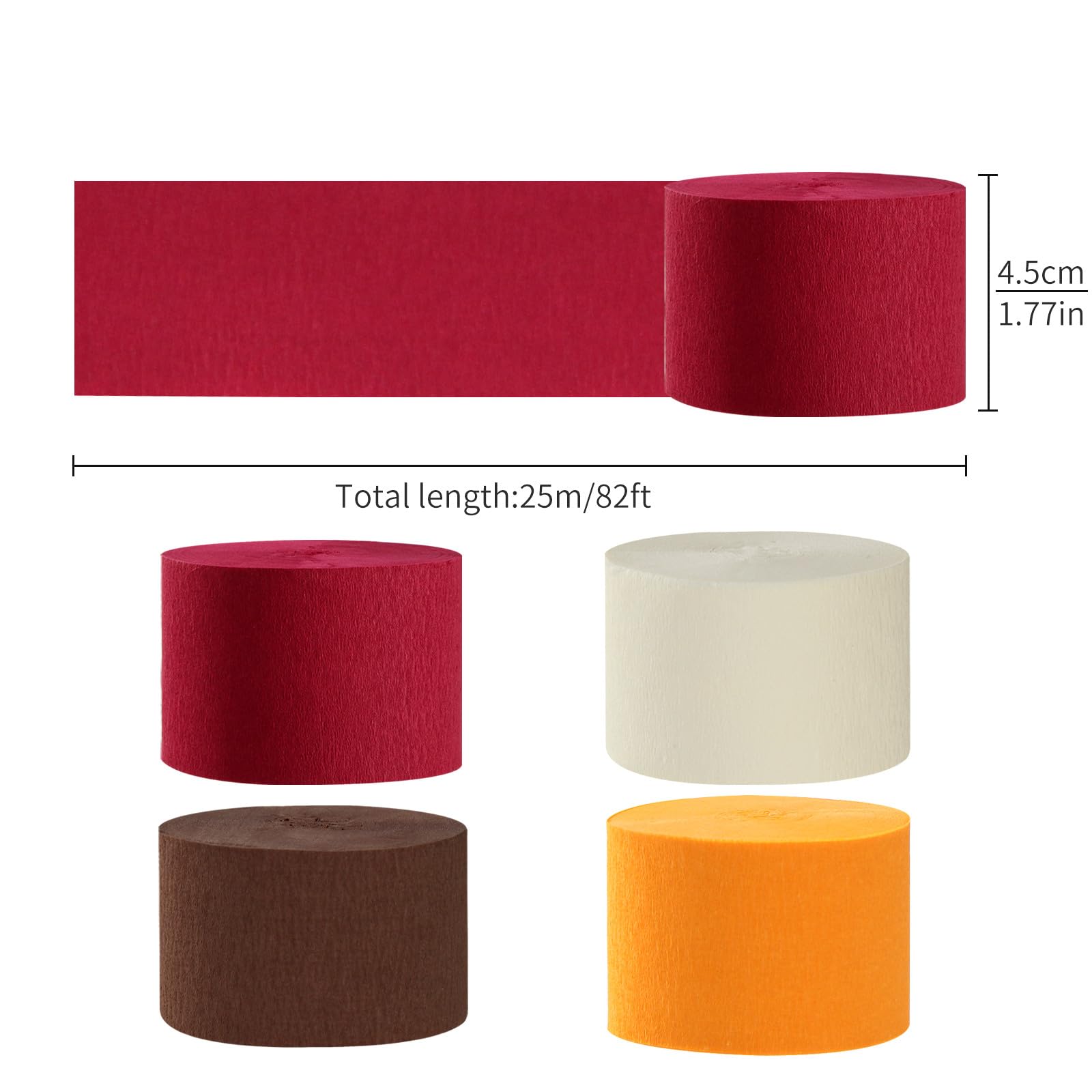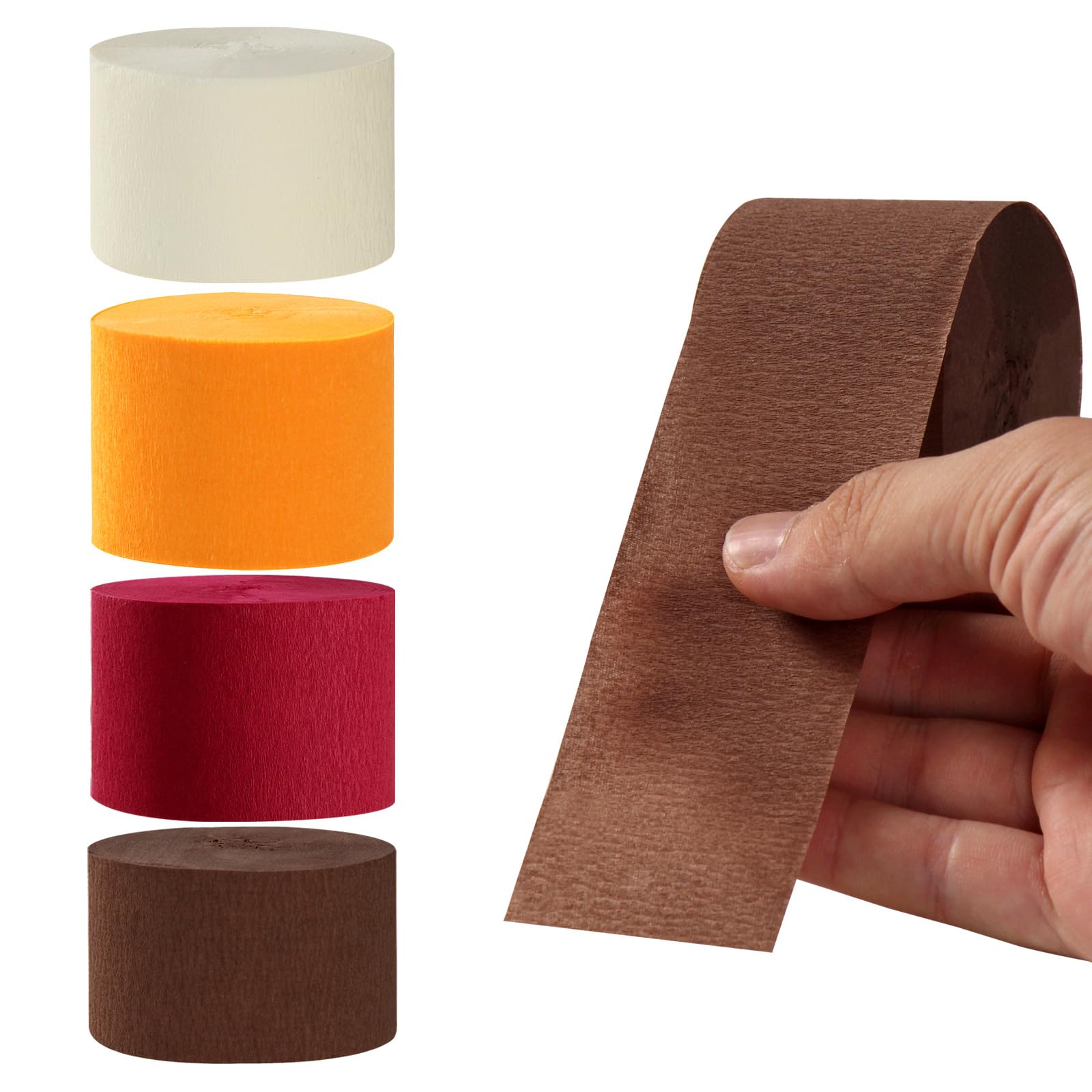 【Bright color】 Our crepe paper is available in 4 colors, 2 rolls per color:beige light orange, orange,brown.There is plenty of each color to really get creative and have some fun.