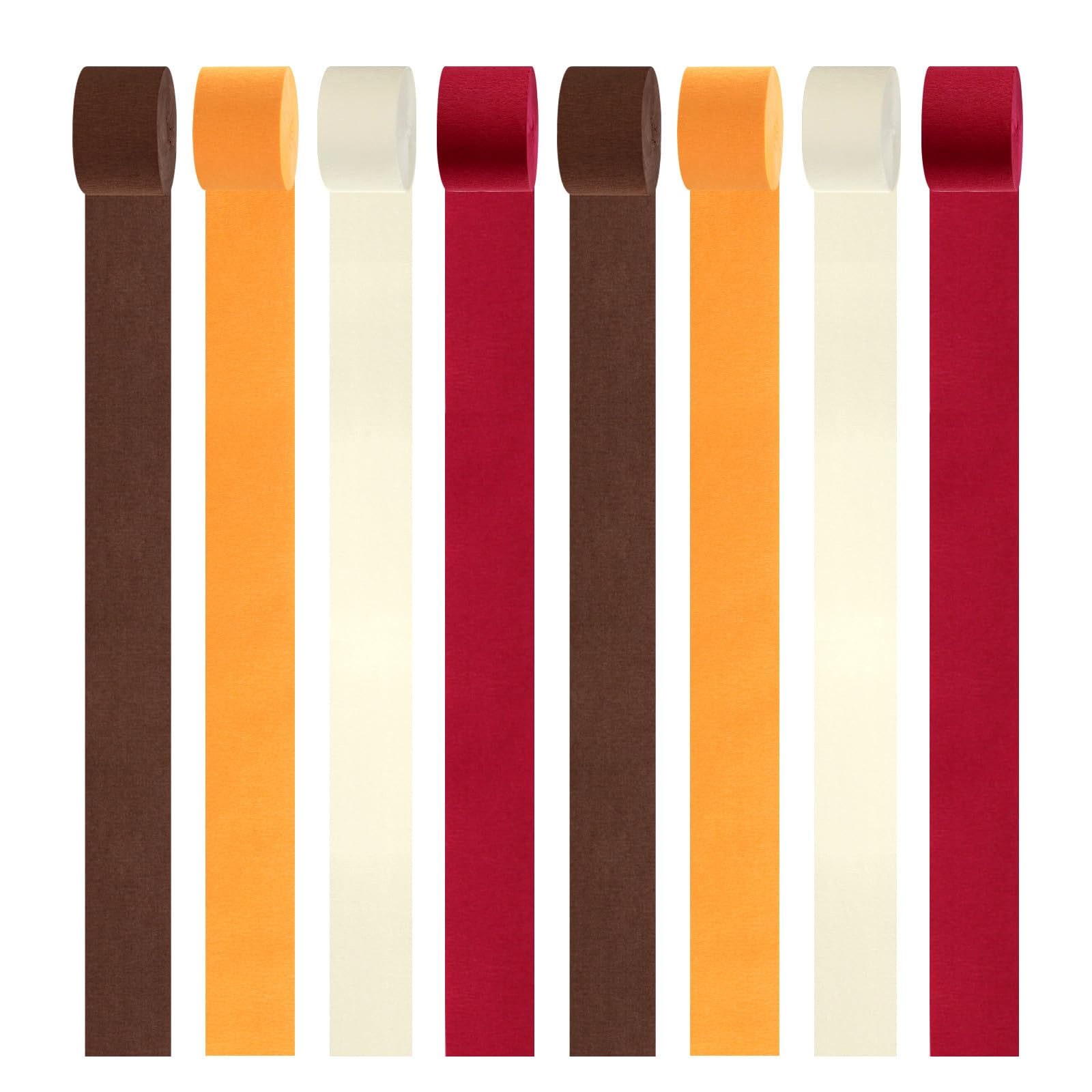 【Package Contains】The sets include 9 rolls crepe paper streamers.The size of each streamer is 1.77inch*82ft.They can be easily cut to your length you want. 【Bright color】 Our crepe paper is available in 4 colors, 2 rolls per color:beige light orange, orange,brown.There is plenty of each color to really get creative and have some fun. 【Widely Used】They are perfect for birthday party, weddings engagement party decorations,fall baby shower decorations,orange party decorations,fall decorations,Thanksgiving Decorations,beige party decorations,brown gender reveal decorations,coffee themed party decorations. 【Resistant to fade】 The paper material of the streamers decorations high quality, recyclable and eco-Friendly,the color is not easy to fade,easy to make twisted streamer backdrops. 【100% Satisfaction Guarantee】You can get a refund unconditionally if you are not satisfied with our products , do not hesitate to contact us if you have any questions.