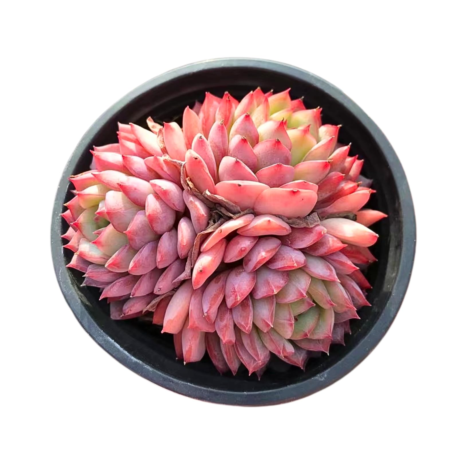 Product Overview The Echeveria Desert Rose - Cluster is a striking succulent known for its velvety red-toned leaves and compact rosette form. This low-maintenance plant is ideal for succulent enthusiasts and collectors. Each order includes one live Echeveria, carefully selected based on availability and variety. Shipping Information Echeveria plants are shipped bare-root and securely packaged to protect them during transit. Soil and pots are not included to minimize damage. The appearance of the plants may vary slightly due to natural factors such as seasonality or growth stages. Each plant is inspected for health before shipment. Company Information We are a California-based, registered nursery specializing in live, exotic plants. All plants are grown in a controlled greenhouse environment and carefully inspected to meet our quality standards. Our goal is to provide high-quality plants with excellent customer service. Order Processing Orders are typically prepared within three business days. If you have special requests, please add a note at checkout. Plants are shipped without soil or pots to protect them during transit. Care Instructions Echeveria plants are easy to care for and require minimal maintenance. Upon arrival, plant them in well-draining soil. Some temporary changes, such as slight dryness or pale coloring, may occur during shipping, but they will resolve with proper care. Light Requirements: Prefers bright, indirect sunlight or direct morning sun. Avoid prolonged exposure to harsh afternoon sunlight. Watering Instructions: Allow the soil to dry completely between waterings to prevent root rot. Temperature Range: Thrives in indoor environments between 65β80Β°F (18β27Β°C) and can tolerate mild outdoor conditions. Soil Recommendations: For best results, use a well-draining soil mix. A combination of cactus soil with pumice, perlite, or grit in equal parts is recommended. Proper soil conditions are essential for healthy plant growth. Note to Buyers Echeveria plants are live items, and slight natural variations may occur. These differences are normal and do not affect the plantβs health or quality. Thank you for supporting our small business!