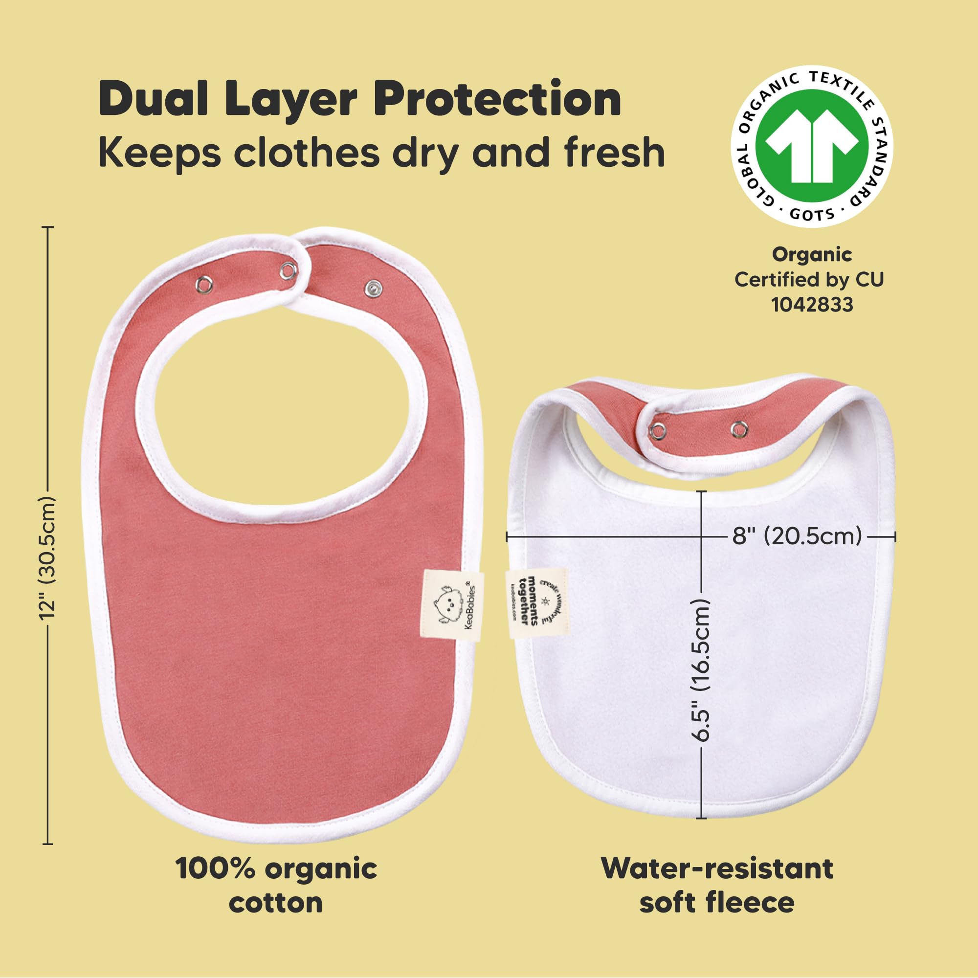 Super Absorbent - Our organic baby boy and girl bibs are made with 100% organic cotton (GOTS-certified) and backed with water resistant fleece for added absorption. This dual layer design helps to keep your baby clean and fresh all day long. Suitable for newborns, infants, toddlers, heavy droolers and teething babies.