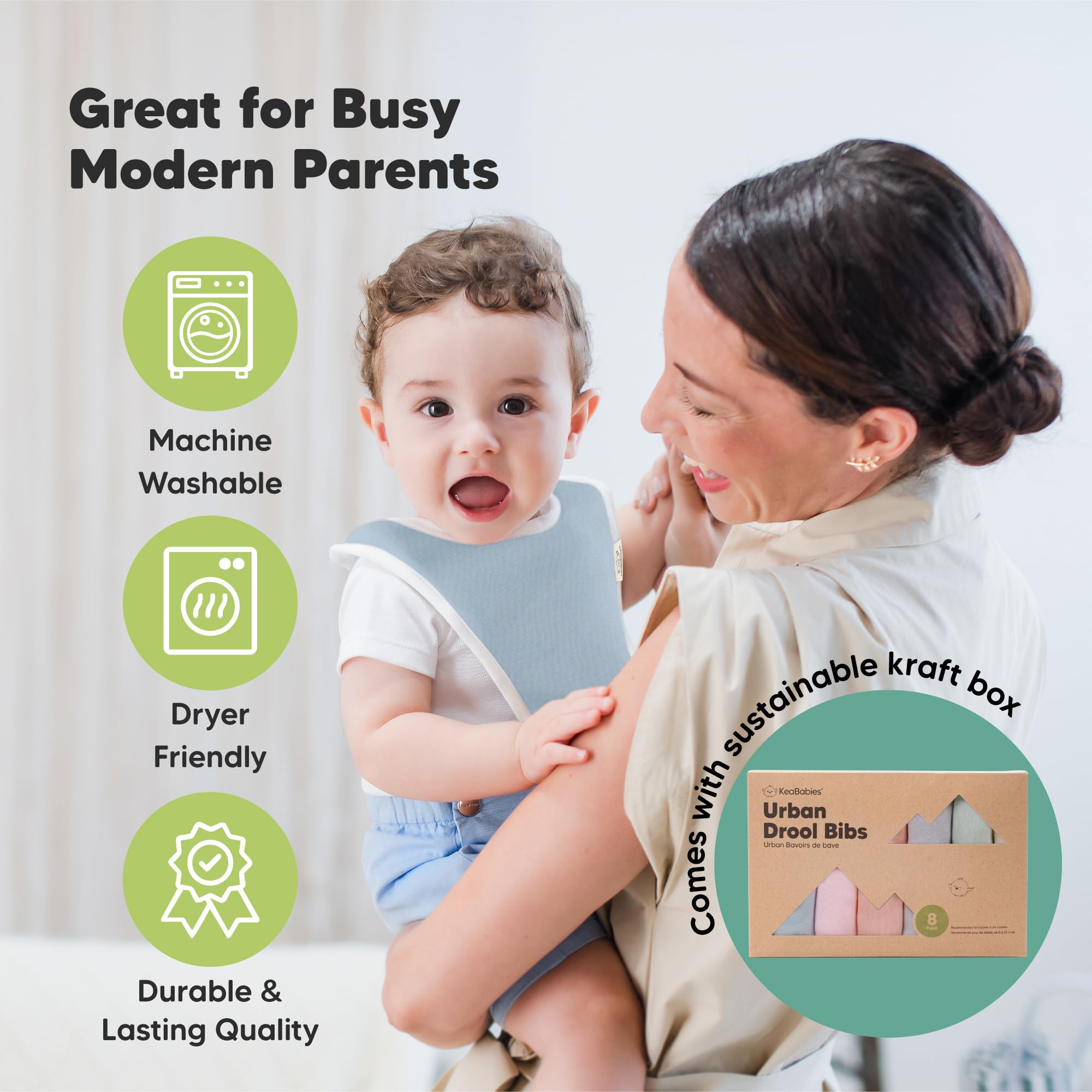 8-Pack Cute and Fun Baby Bibs for Boy and Girl - Our organic baby boy bibs and girl bibs are exclusively designed by KeaBabies to ensure that your baby never runs out of styling options. Our baby bibs are unisex and easy to match, making them a fuss-free teething baby essential.
