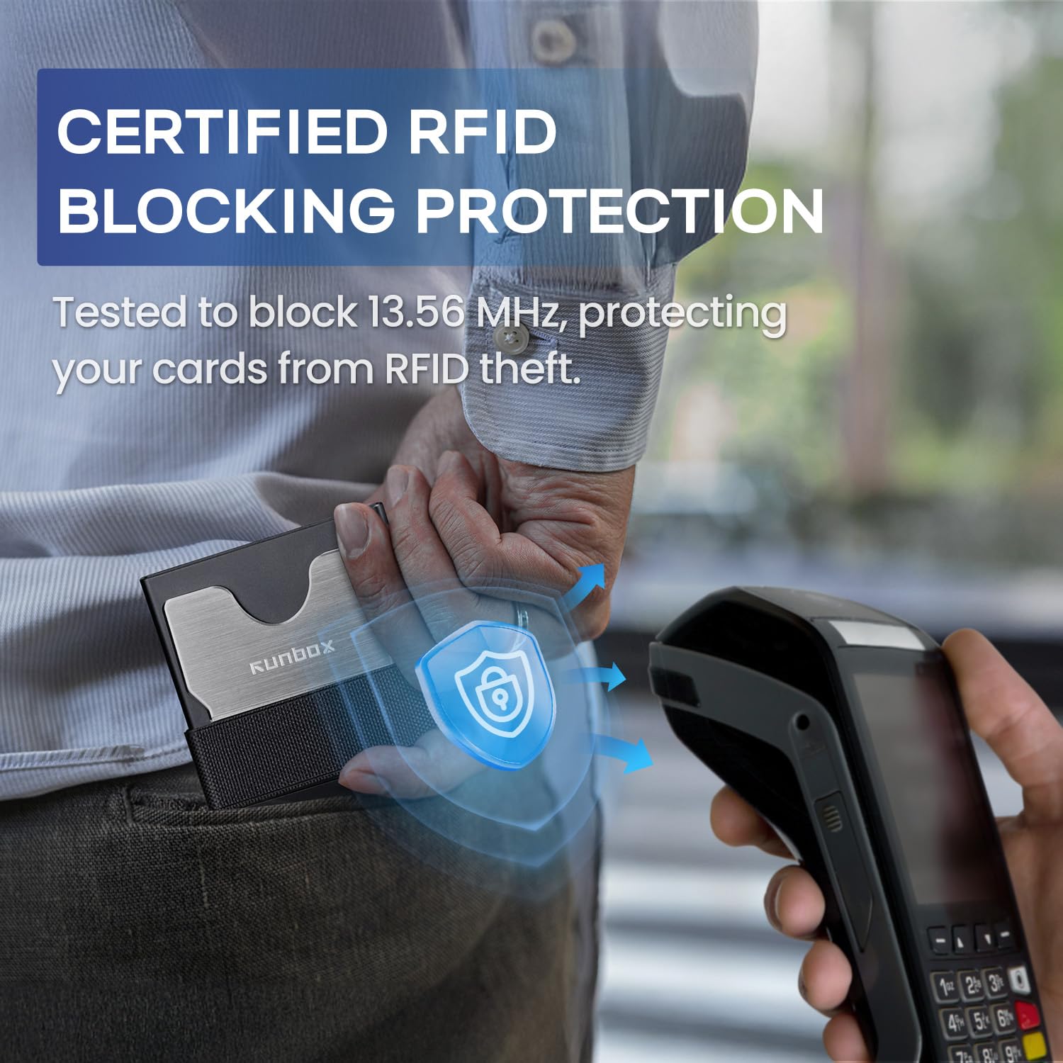 Military-Grade RFID/NFC Protection: Built with solid aluminum shielding, this smart wallet blocks 13.56MHz signals to prevent digital theft. Safeguard credit cards and IDs from skimming devices – your data stays secure