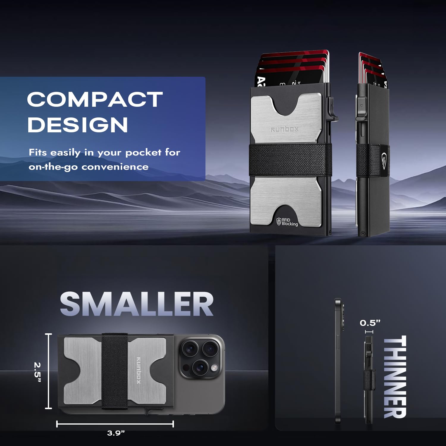 SLIM WALLET FOR MEN with Ultra Thin & Lightweight Design: At just 0.5" thick and 2.6oz, this minimalist tactical wallet slips seamlessly into any pocket. Dimensions: 3.9"x2.5" – perfect for discrete everyday carry. The innovative expandable backplate adds storage without bulk, letting you ditch oversized wallets