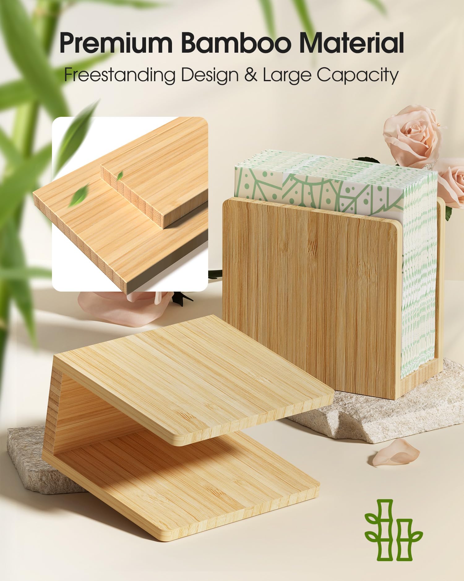 Versatile&Modern Style:This upright napkin holder offers a wide selection of styles and finishes for every type of occasion,perfect for using in outdoor&indoor,kitchen,office,bar,party and etc.Elegant design and simple bamboo color is a great addition to your farmhouse decor