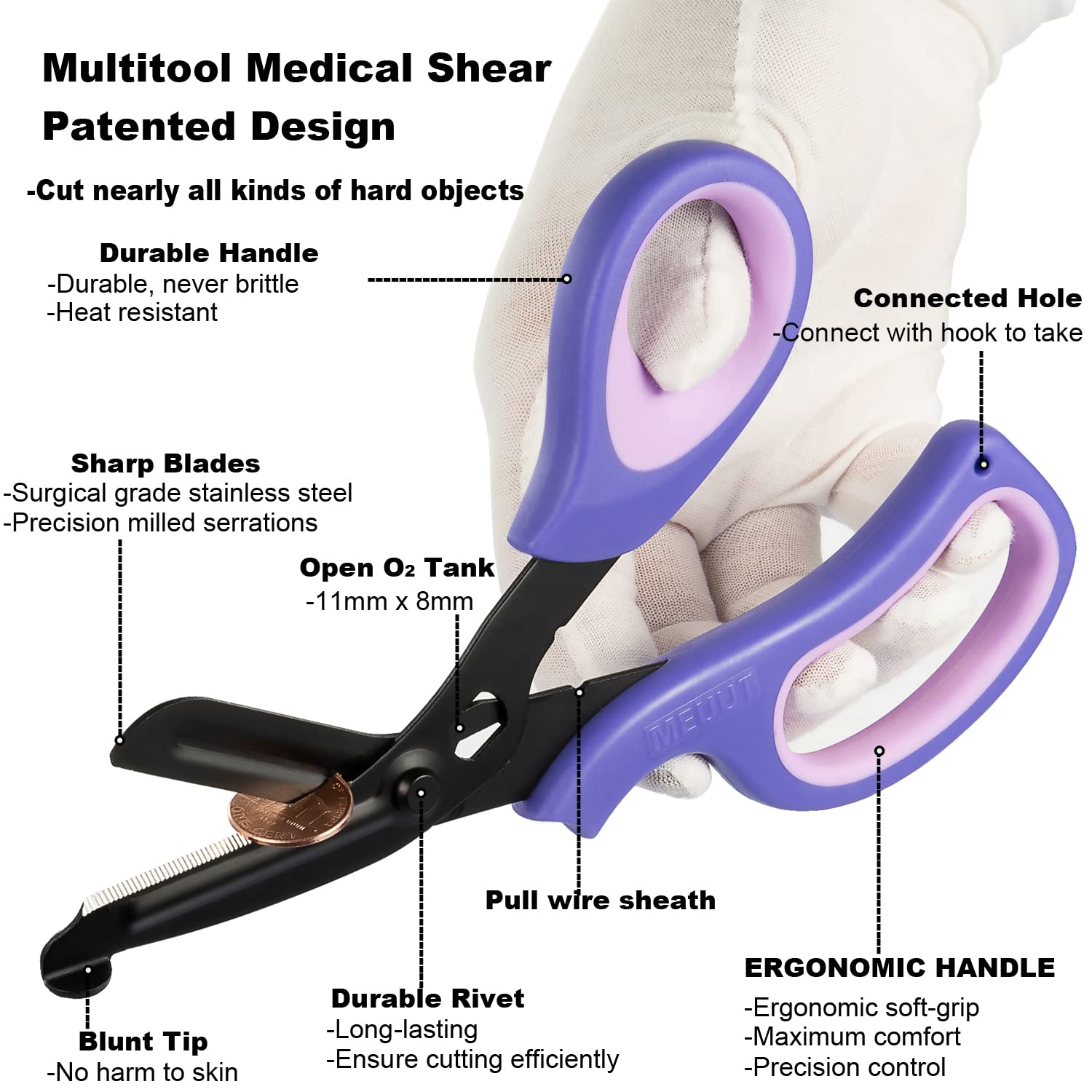 【HIGH QUILITY】: 150000 times cutting test passed, heavy duty trauma shears, made of surgical grade stainless steel 440 blades with milled serrations, fluoride-coated non-stick surface with lightweight and soft grip handle.