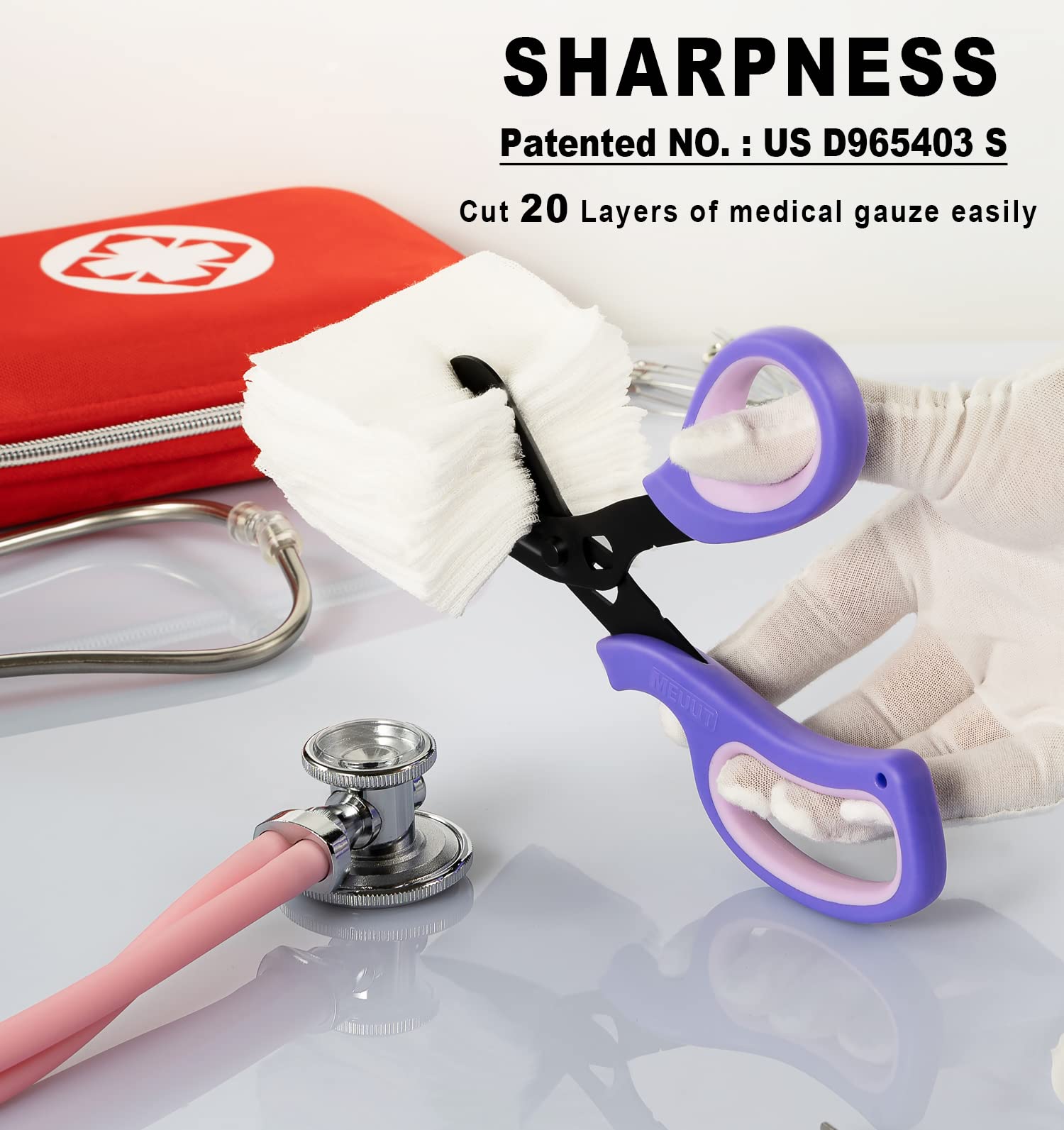 【PATENTED MEDICAL SCISSORS】: Cut anything safely and efficiently with these sharp, professional grade medical scissors. The upgraded blades material is stainless steel 440, with higher strength and hardness compared to others, to ensure MEUUT medical scissors much sharper and durable for long-lasting time. Forging high-density stainless steel blades with 3 times heat treatments to ensure scissors much sharper and durable.